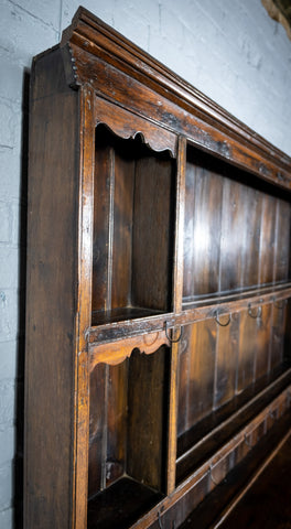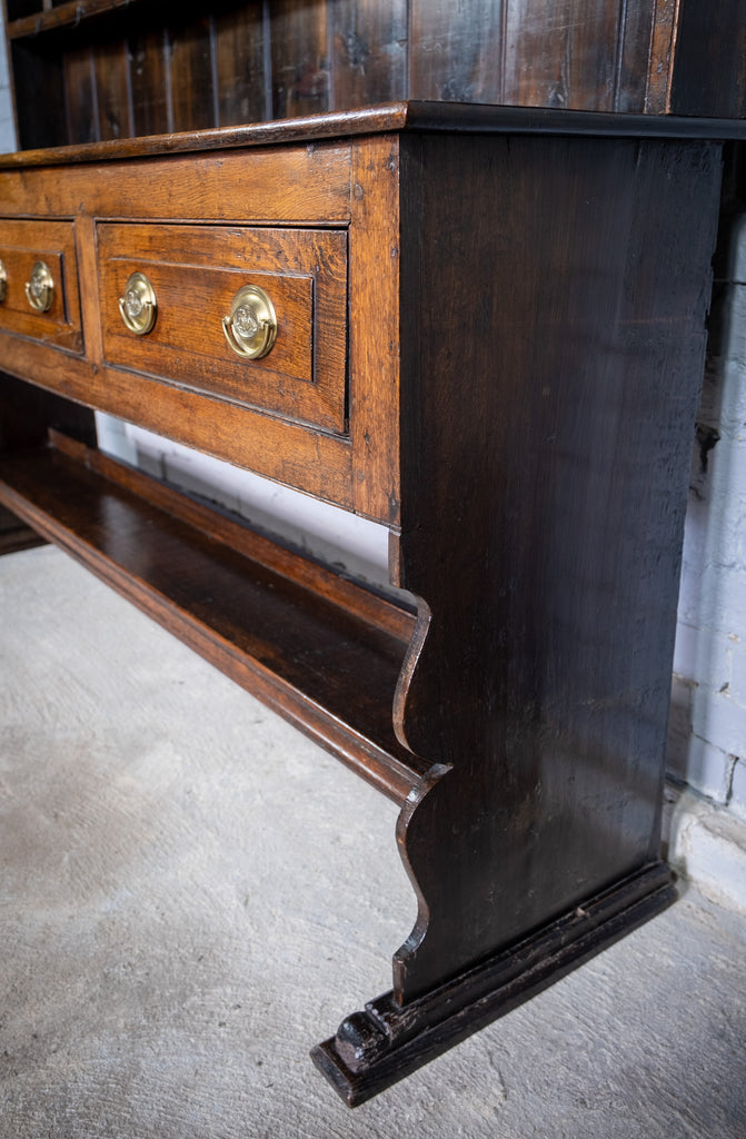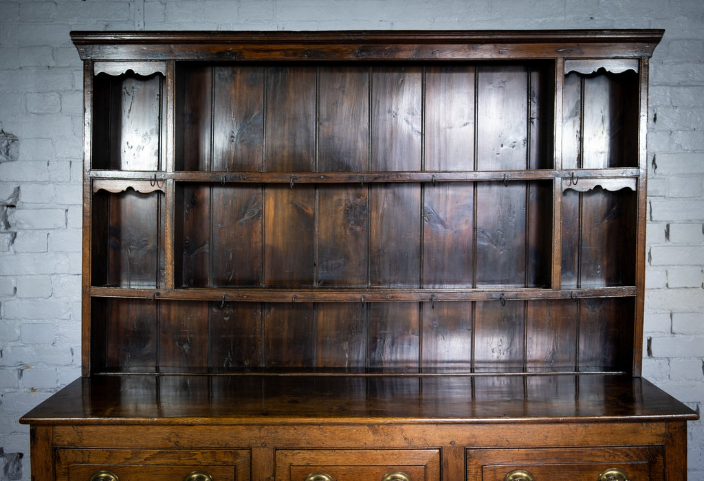 George III Period English Oak Dresser With Rack.
