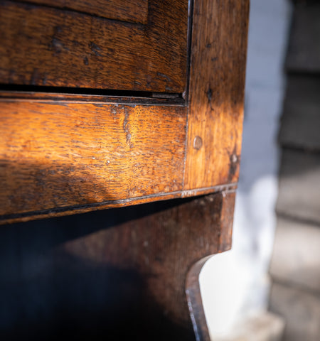The right foot has more wear than the left (please see photographs) but generally the dresser remains in a very good condition overall. The oak is full of character and has a wonderful colour throughout.