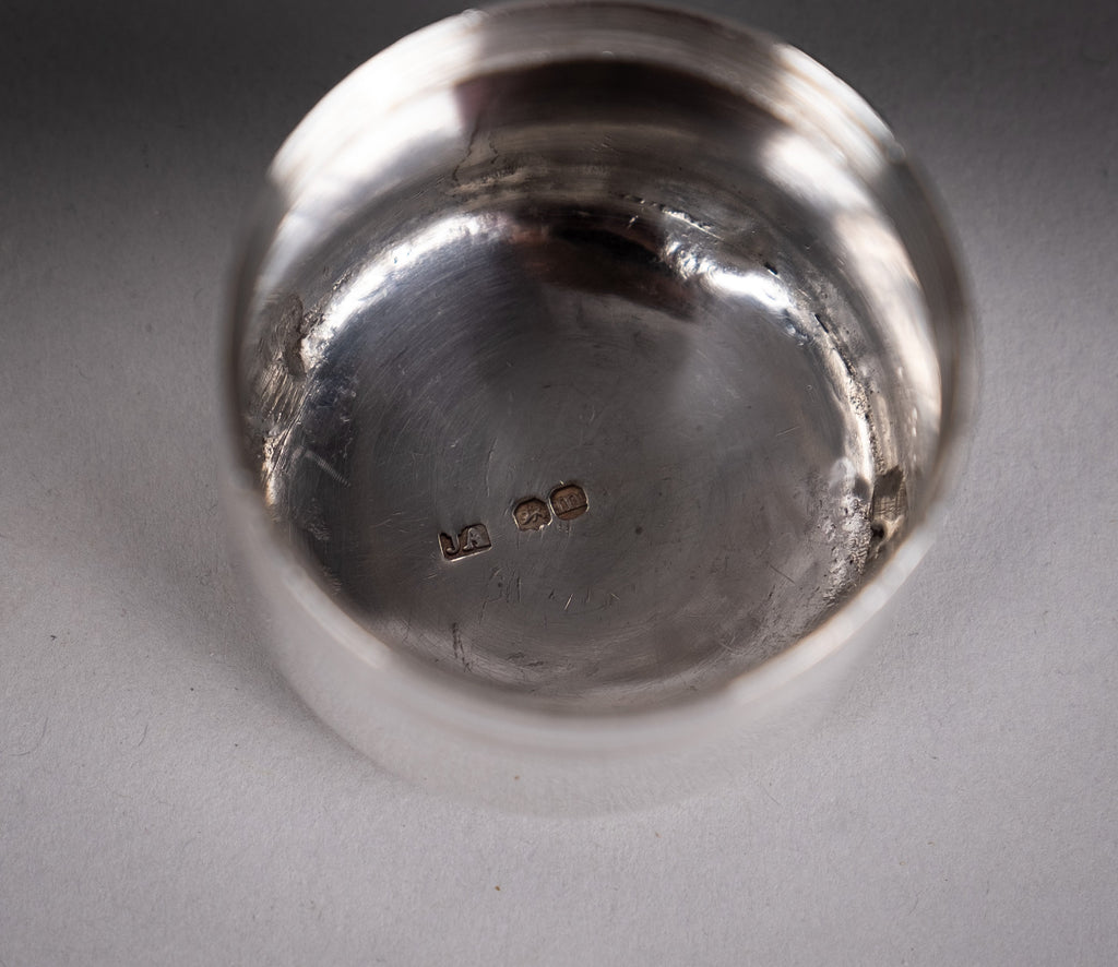 A superb Georgian sterling silver decanter and glass set, fully hallmarked for Joseph Angell I, London, 1827.