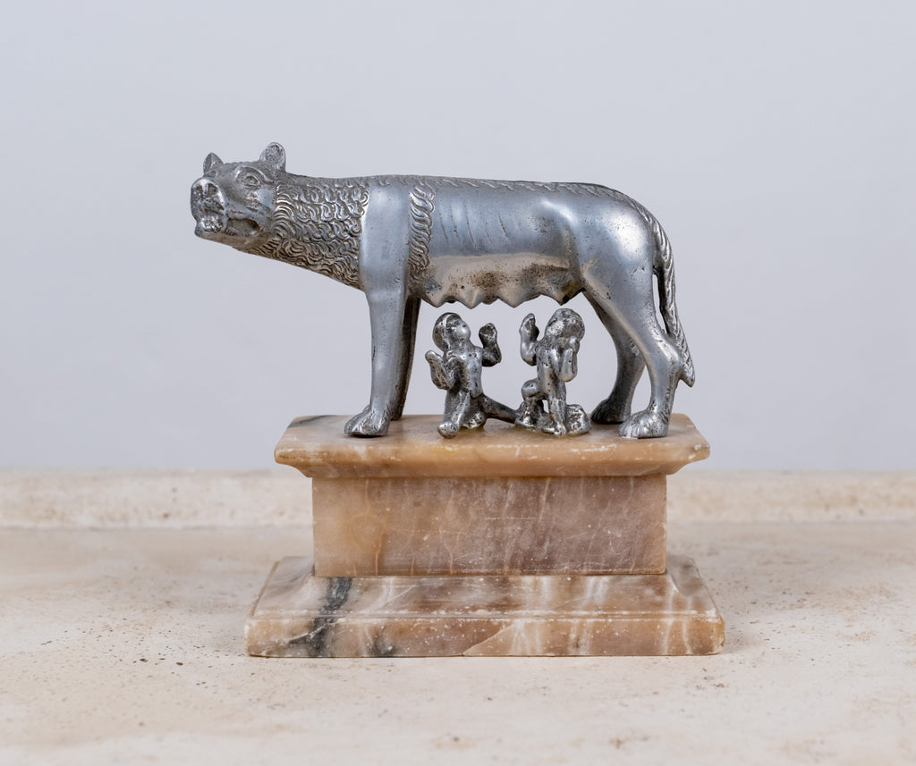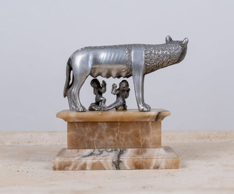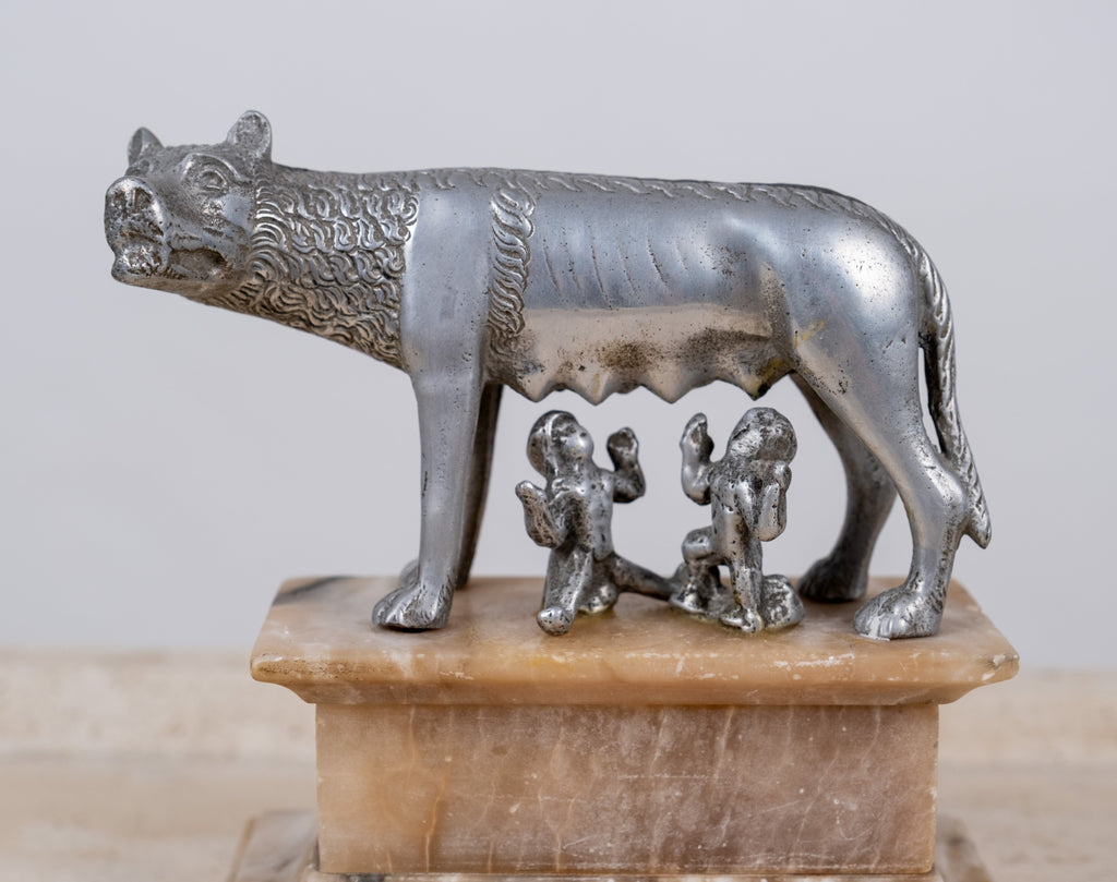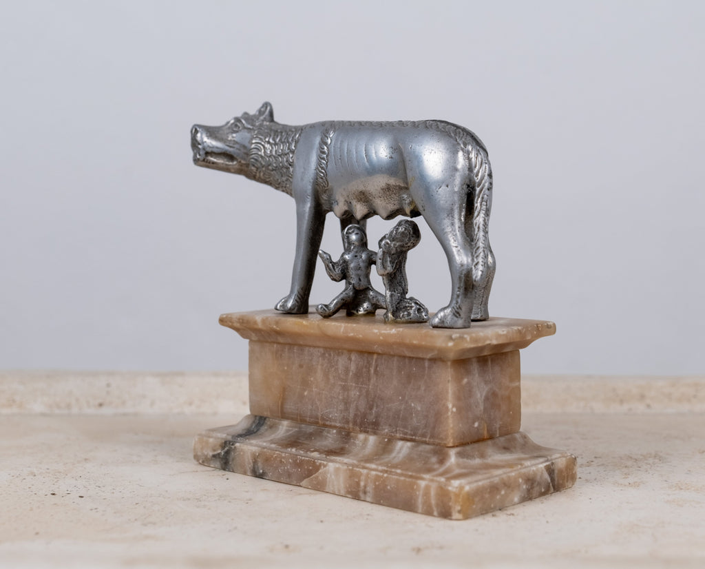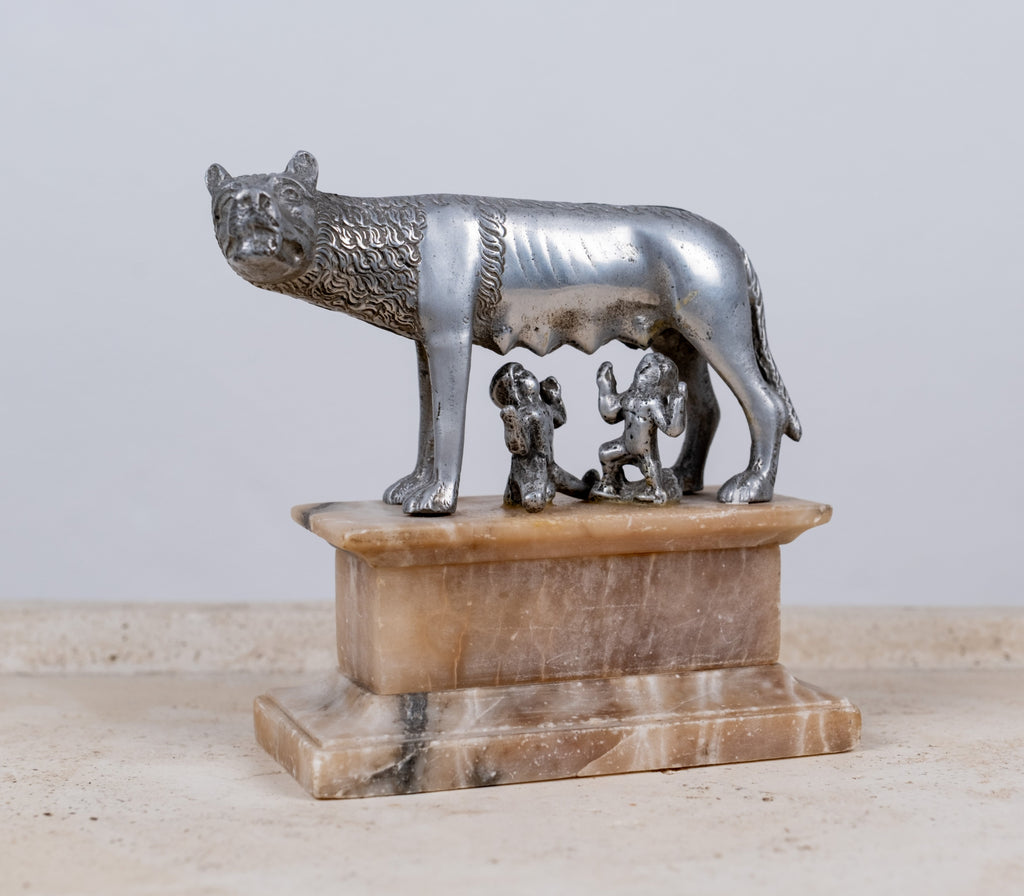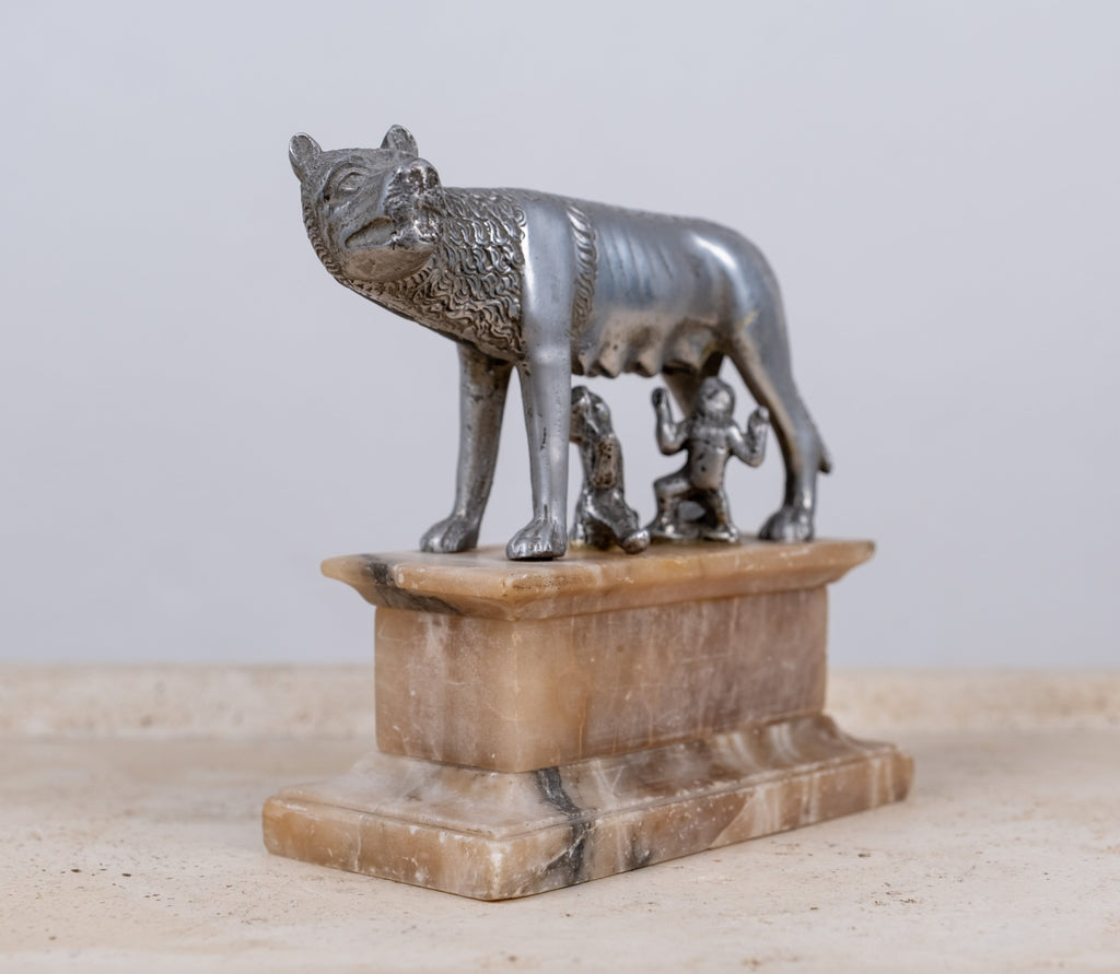 The Capitoline Wolf represents the ancient legend of the founding of Rome. It is a bronze sculpture of the she-wolf suckling the twins, Romulus and Remus, and is housed in the Capitoline Museums, Rome.