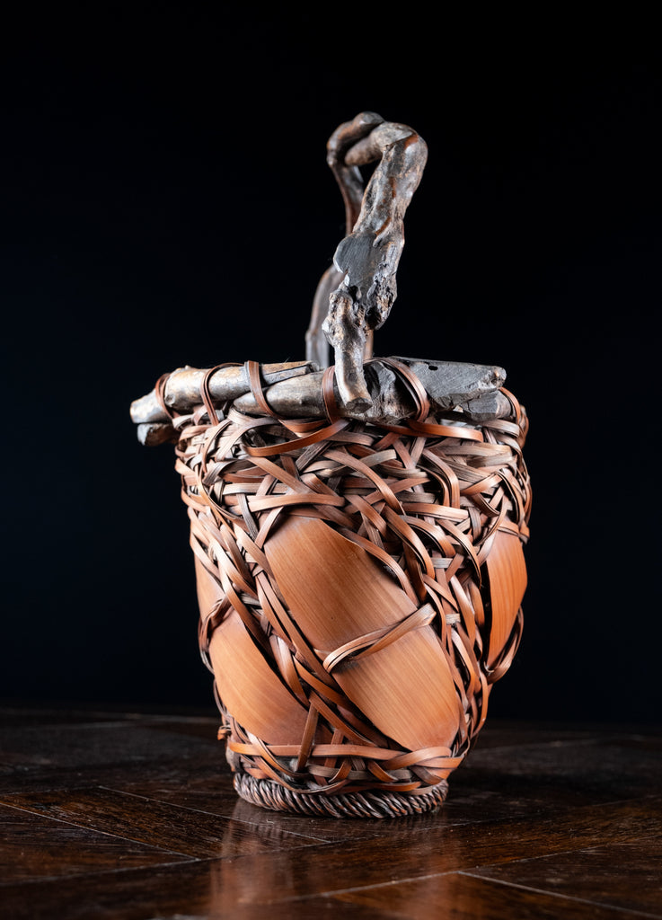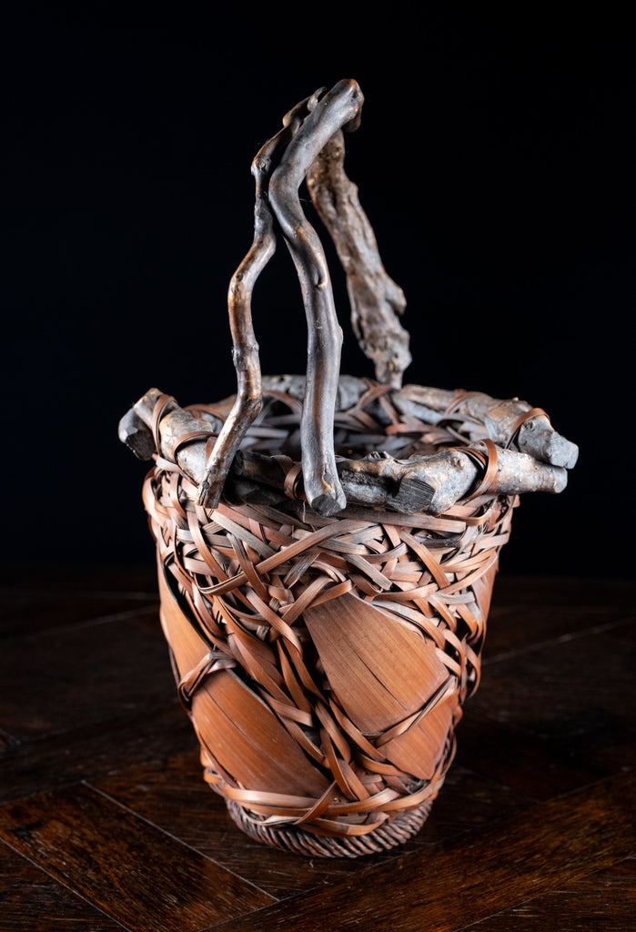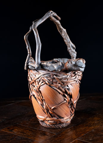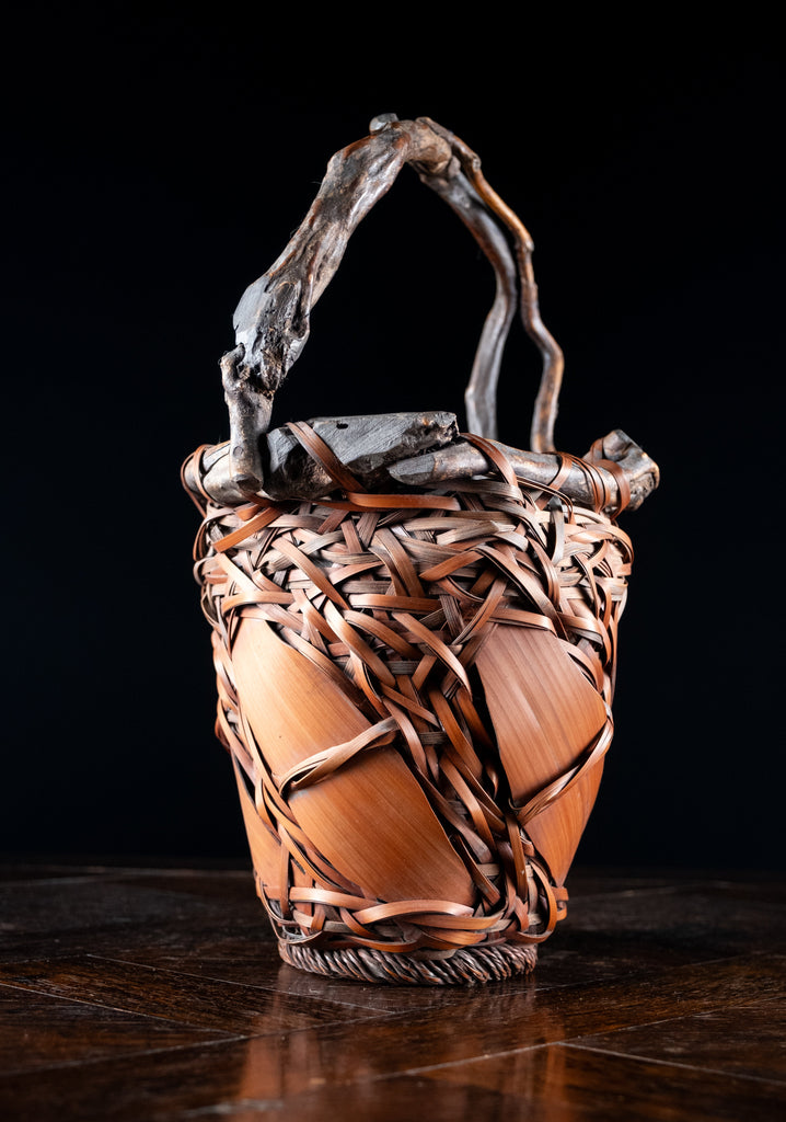 Japanese Ikebana Basket With Root Handle
