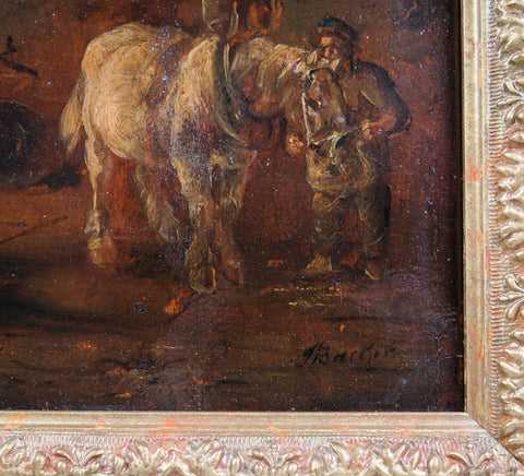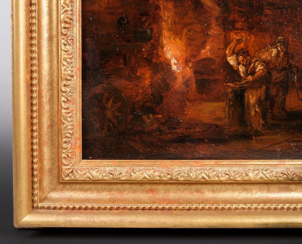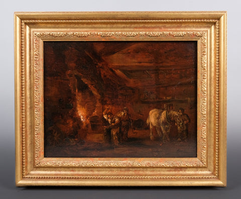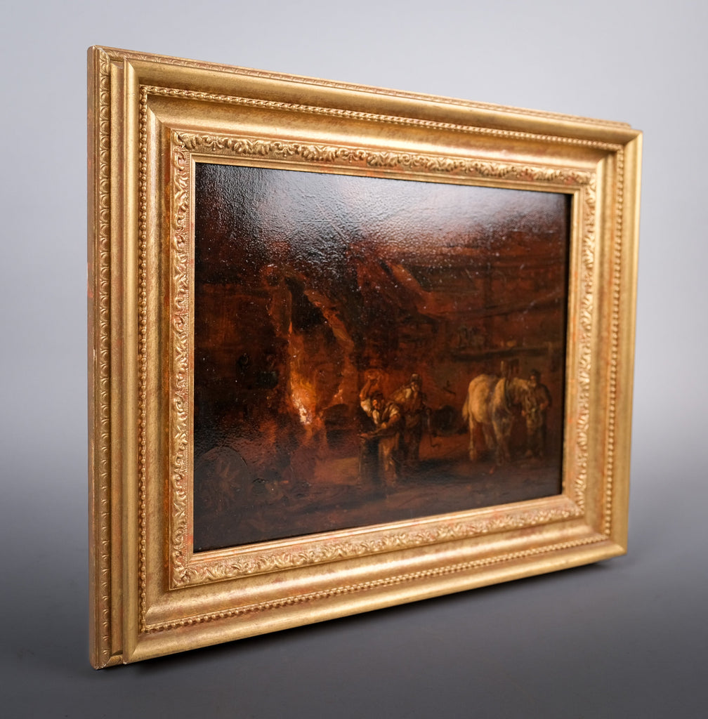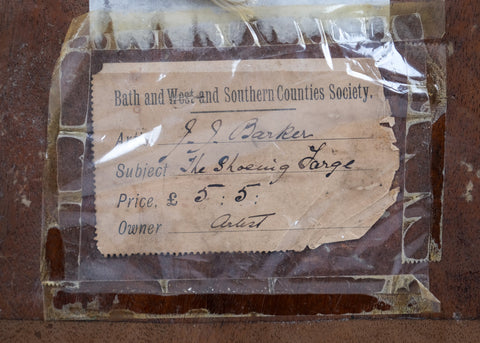 'The Shoeing Forge' by John Joseph Barker Of Bath (1824-1904), signed to the lower right, and signed and titled verso. Oil on board.