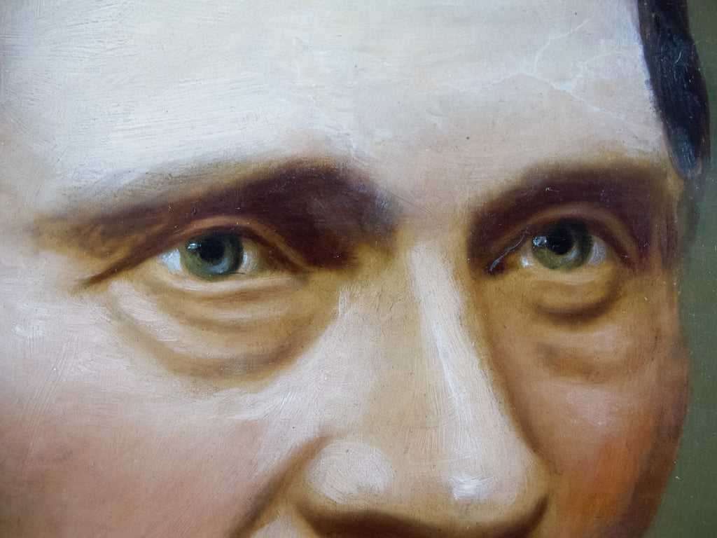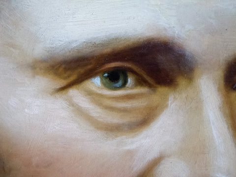 Some evidence of restoration can be seen when viewing the work up close under a light, to the right forehead for example (please see photographs). The subject itself is well executed and definitely draws the eye in a room.