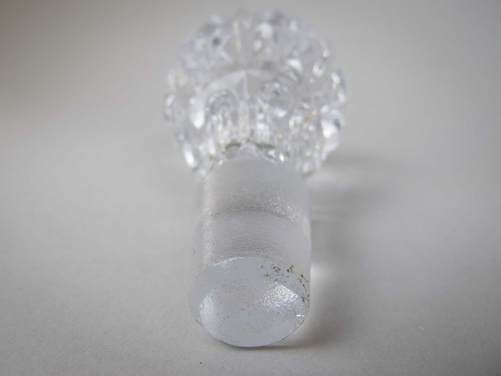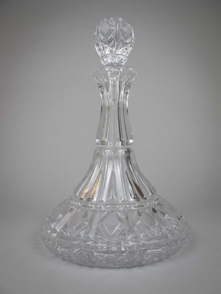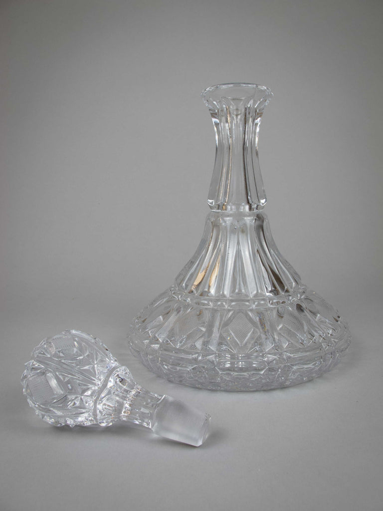 The glass shows some very light scratches in places due to age, and there is some discolouration to a small section of the glass at the base (please see photographs). Both the decanter and stopper are free from chips and cracks.