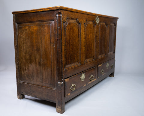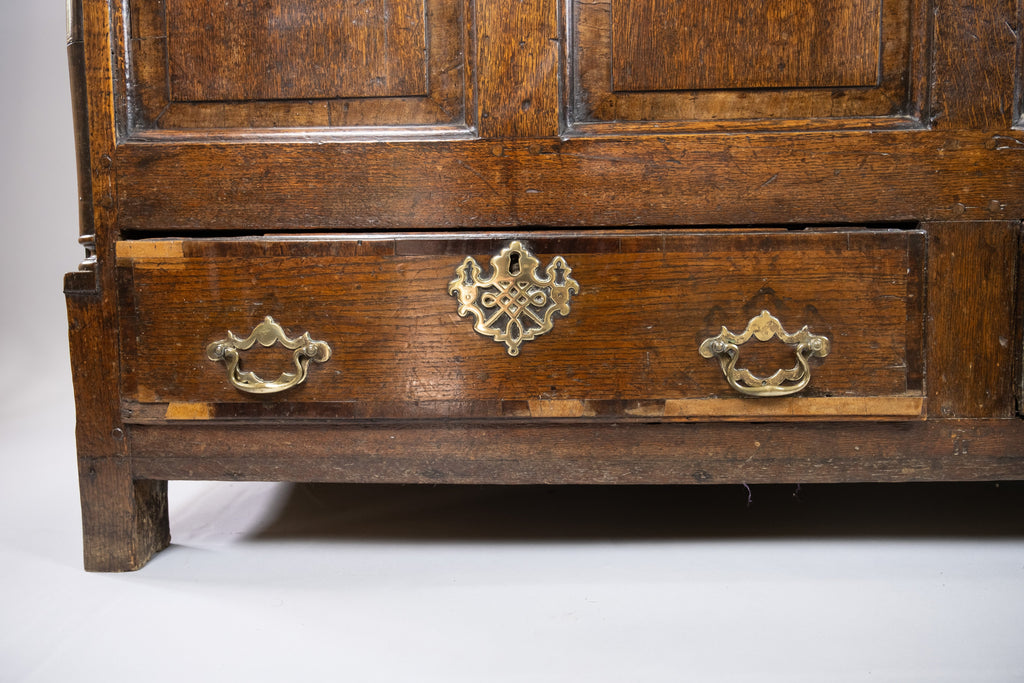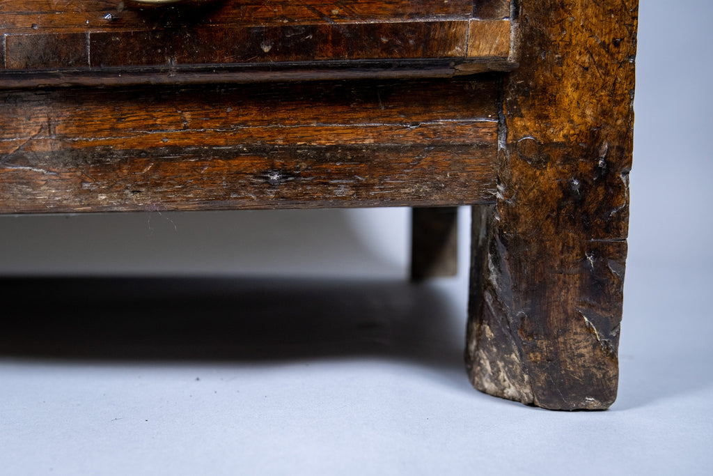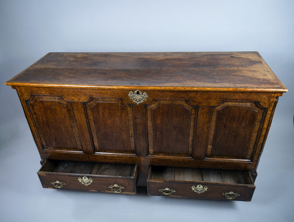 The chest has some wear commensurate with age, mainly to the left drawer moulding and the inside of the right block foot (please see photographs) which adds to the character of the piece. The oak has a wonderful patina throughout.