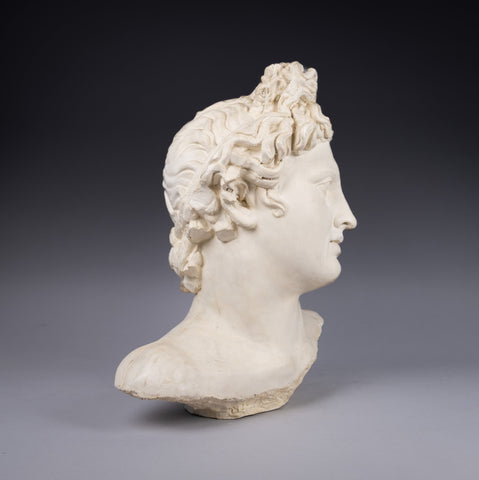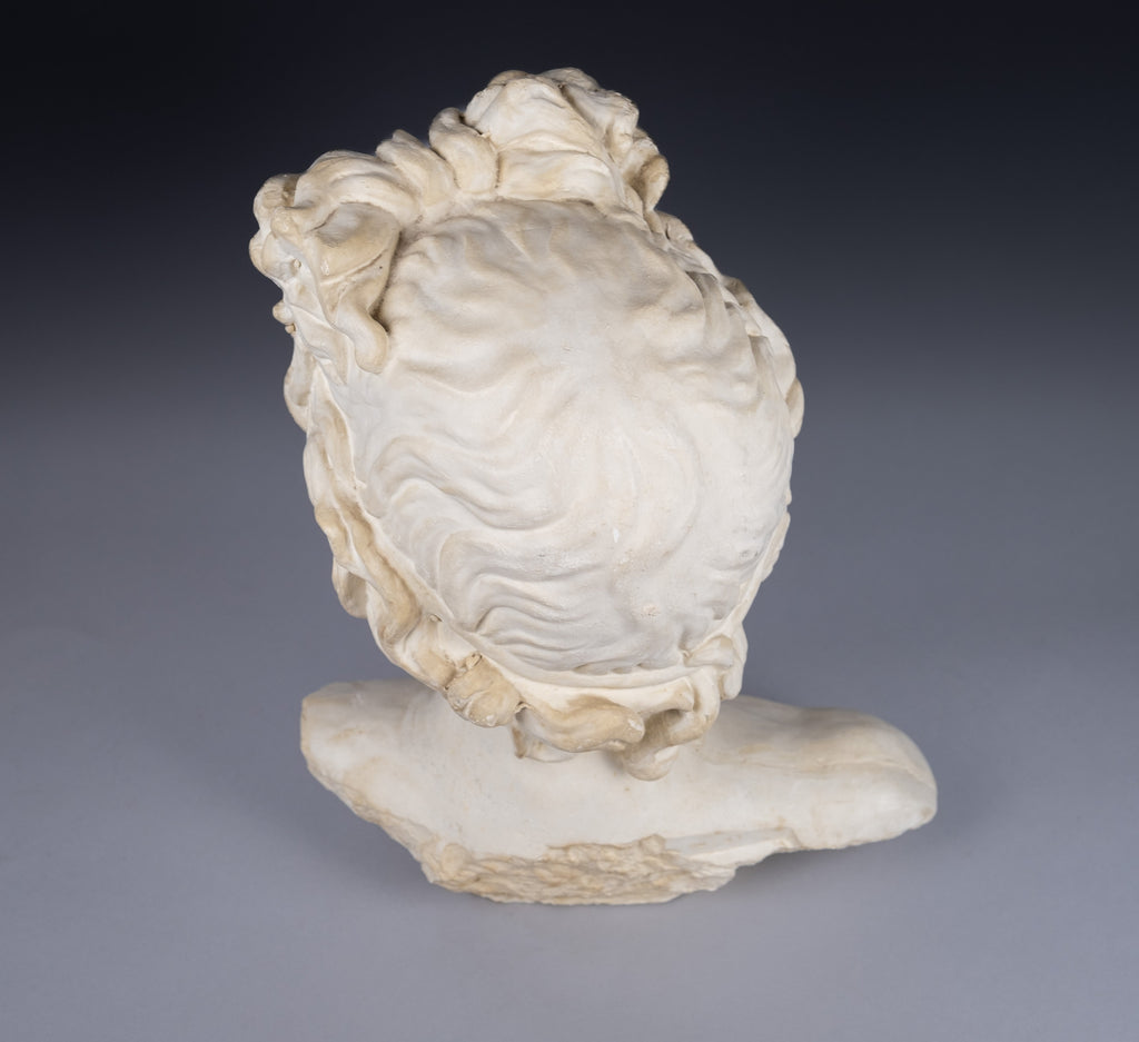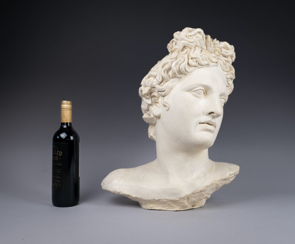 The bust is of large proportions and unusual form with the bust terminating at the very top of the shoulders and the plaster being carefully modelled so that the bust stands alone without a plinth. The absence of a plinth gives this bust a more natural, neoclassical presence and as such it displays exceptionally well.