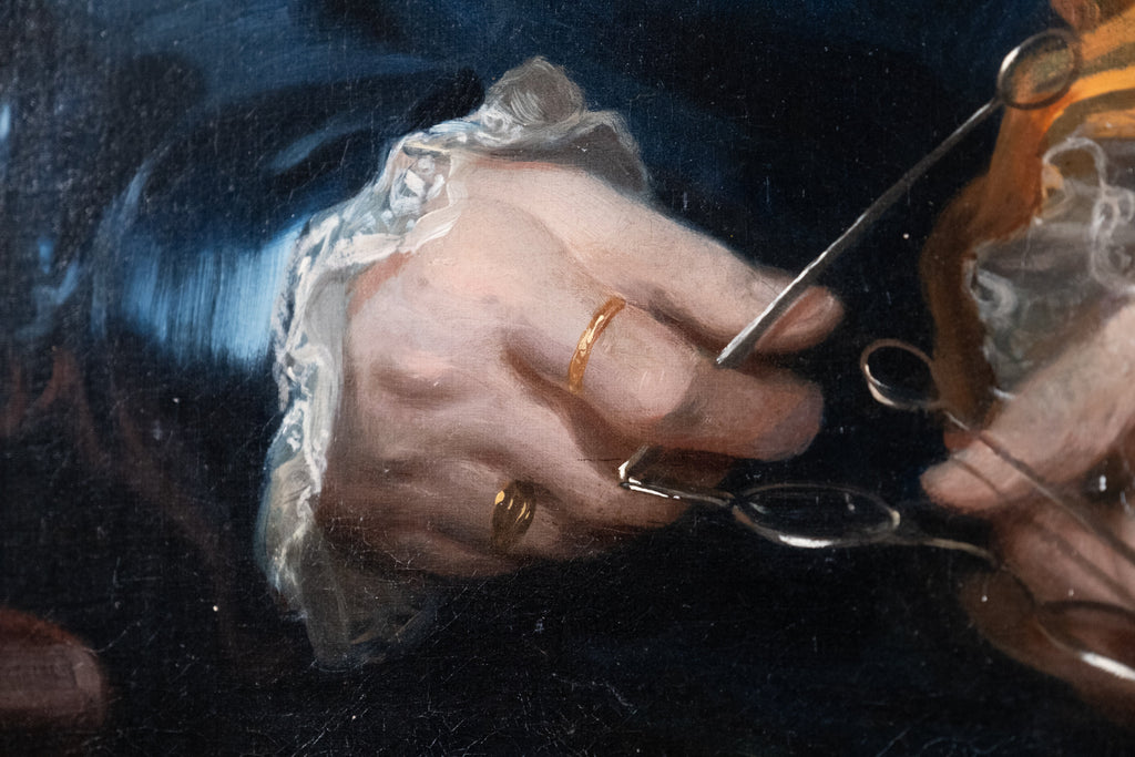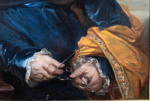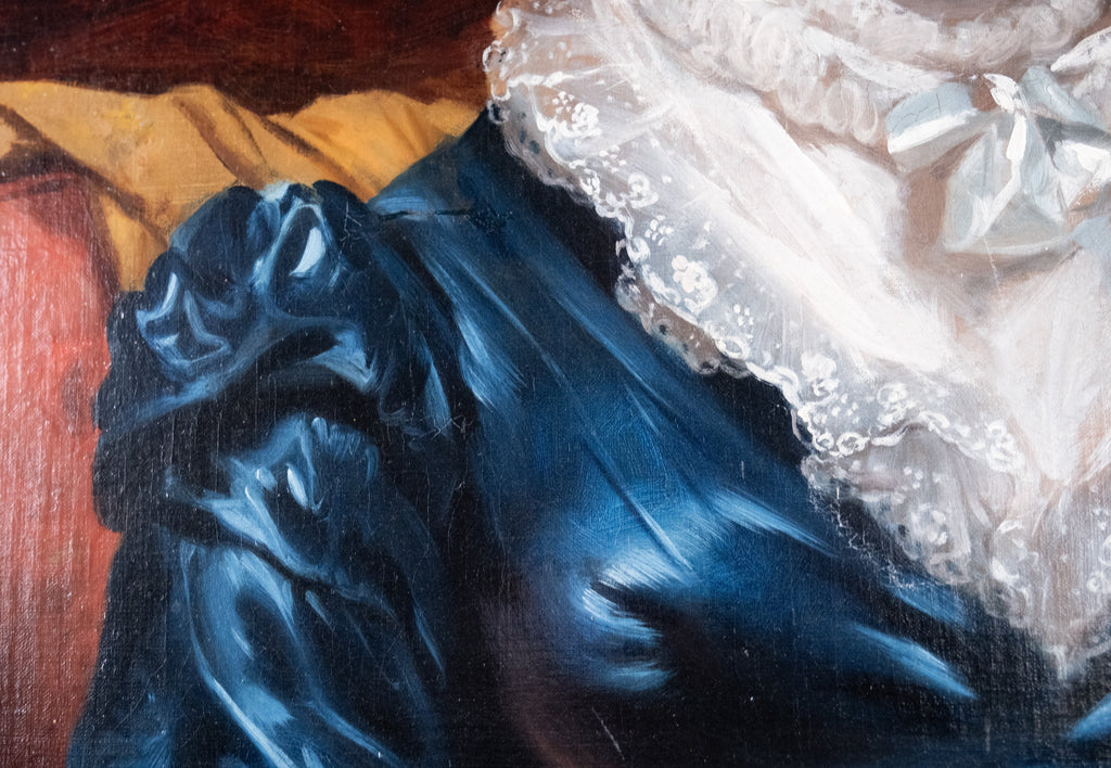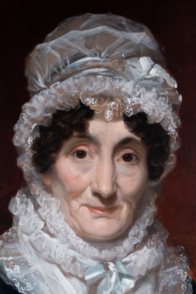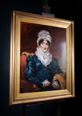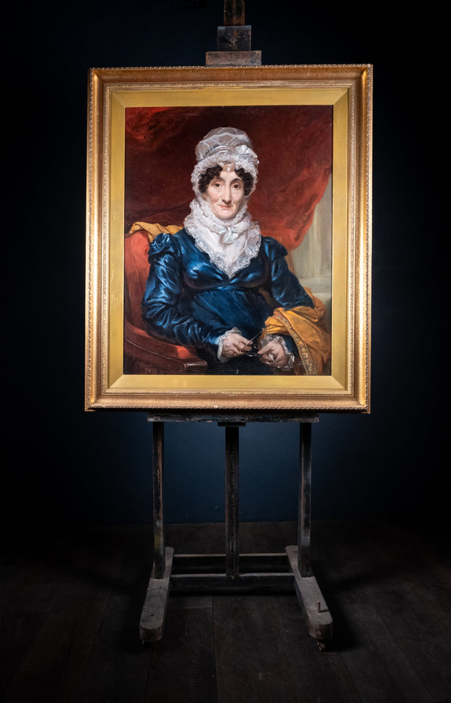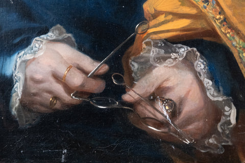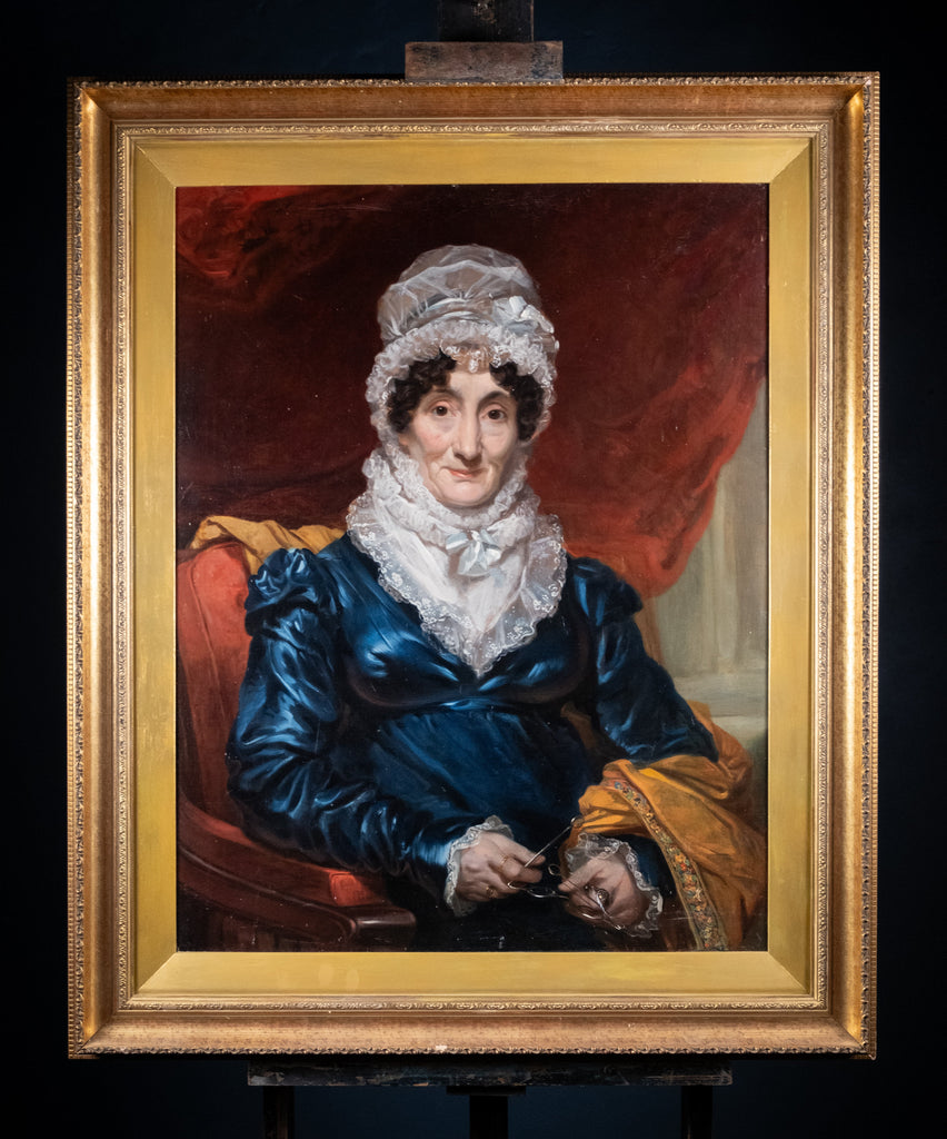 The work is finely executed with the depiction of her hands, spectacles and embroidered shawl being of particular note. There are some minor losses to the extreme lower section of the work, the impact of the same now minimal as the work has been historically relined and re-stretchered.
