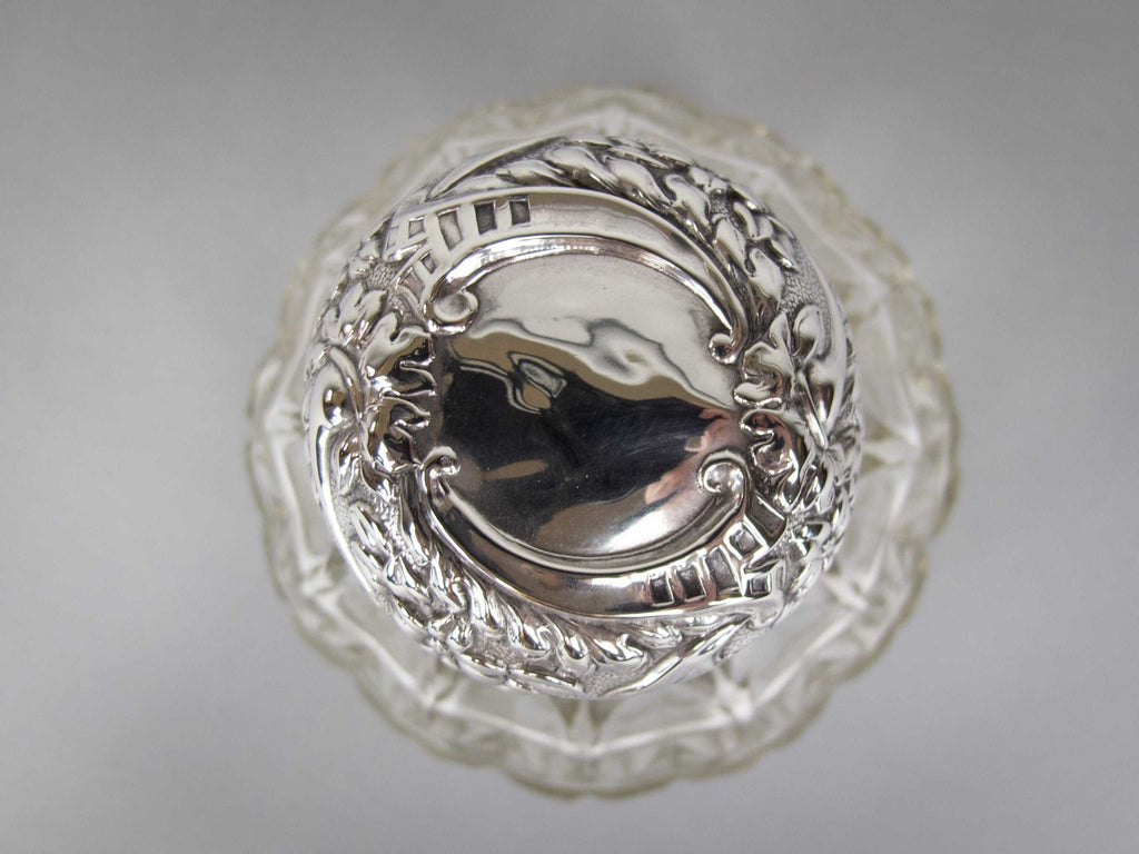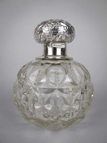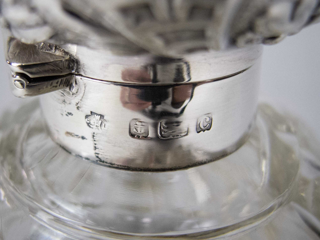 A stunning sterling silver and cut glass scent bottle of large proportions, fully hallmarked for William Hutton & Sons, Birmingham, 1902.