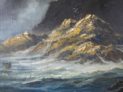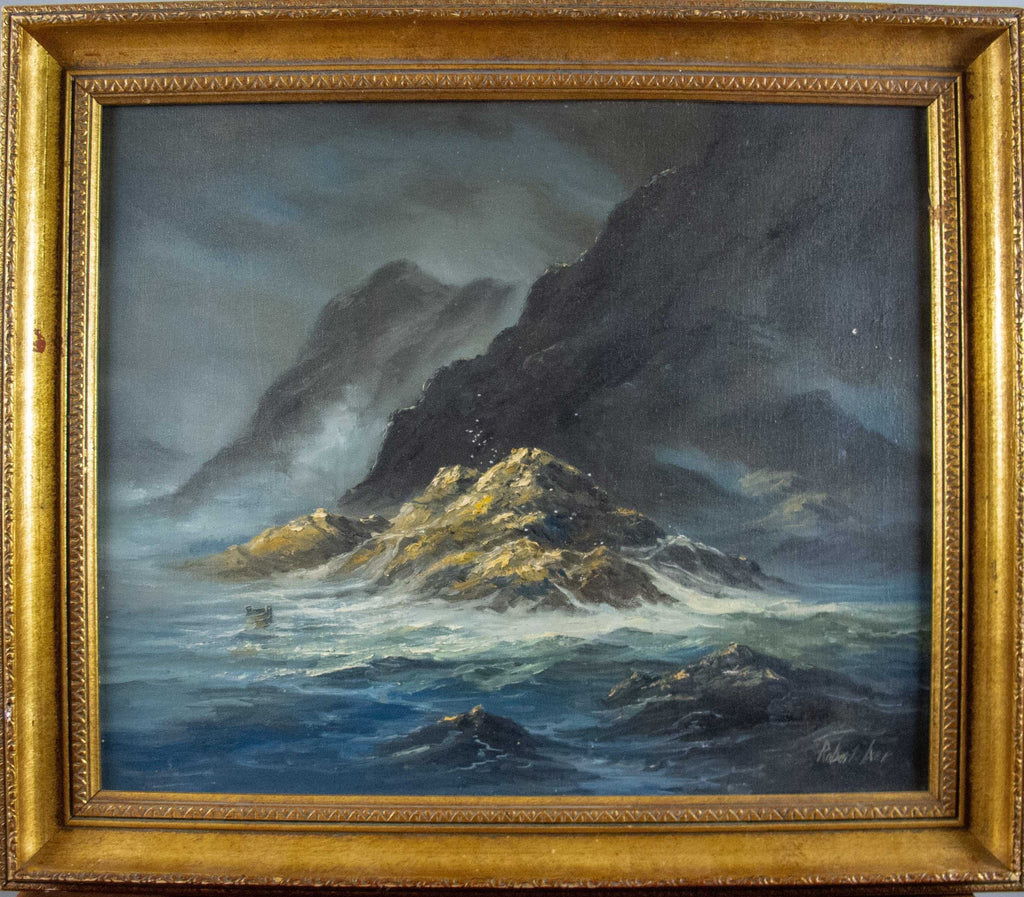 A wonderful textural oil on canvas depicting a rocky shoreline, signed 'Robert Ixer'.