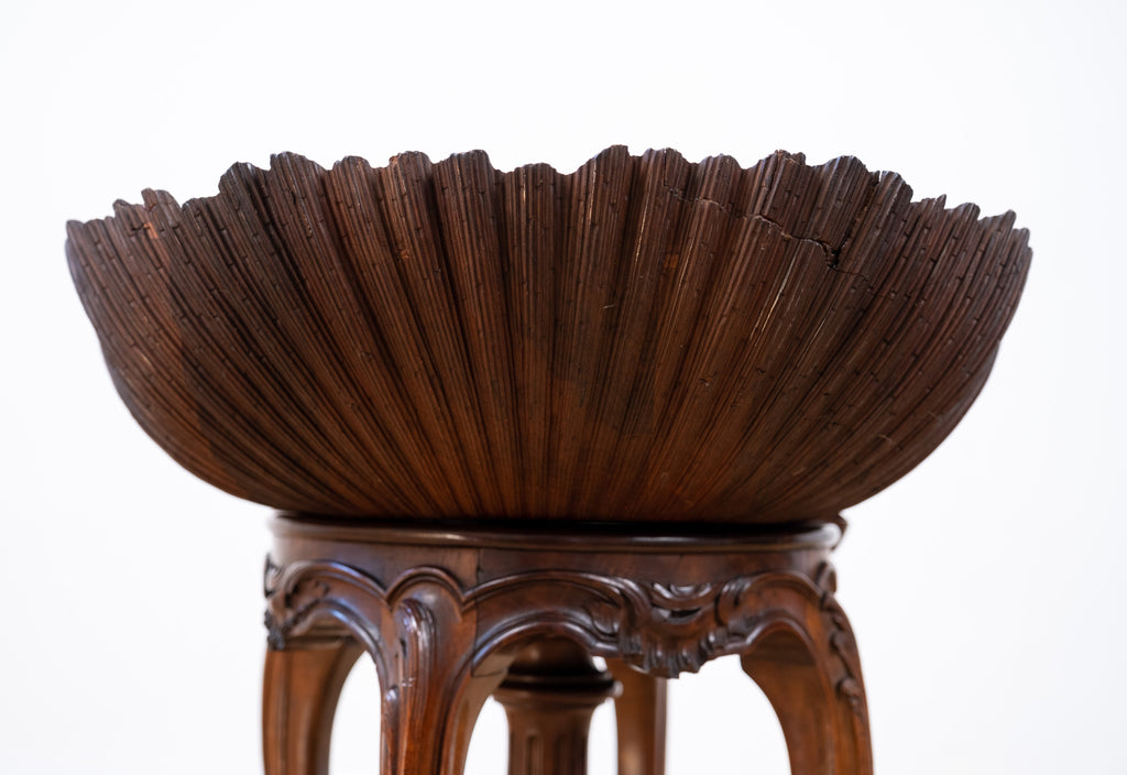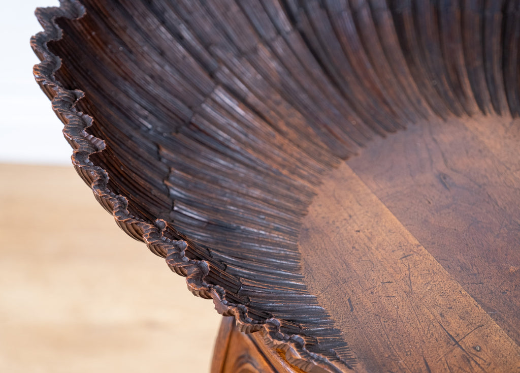 There is an historic repair to the top right of the shell which is almost invisible when viewed from the front but is evident upon close inspection from the back (please see photographs). There are some minor losses to the shell extremities in areas but generally the stool remains in an attractive condition, remaining strong and being of great colour.