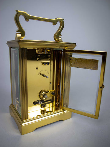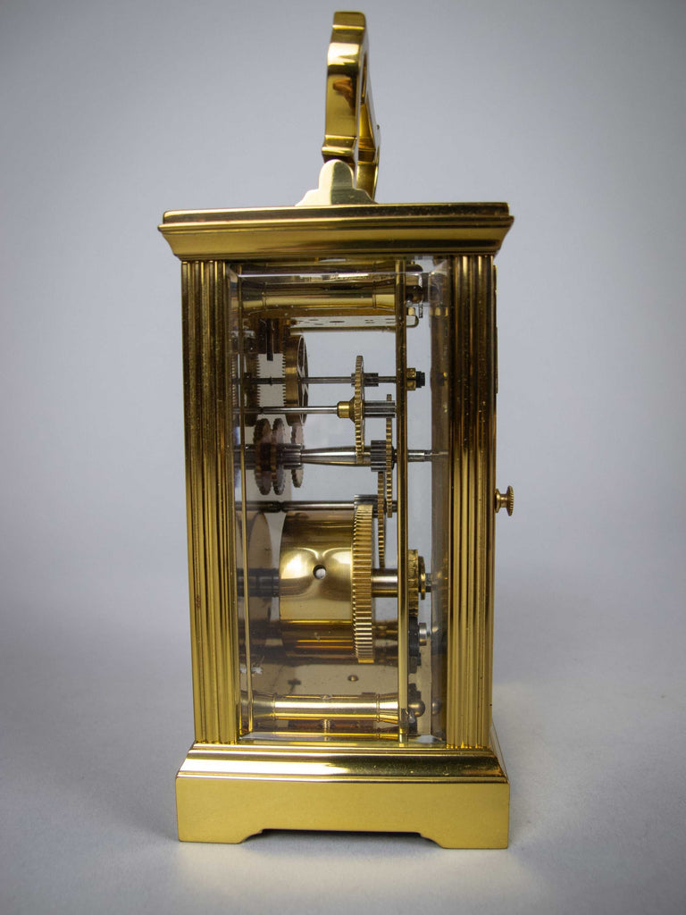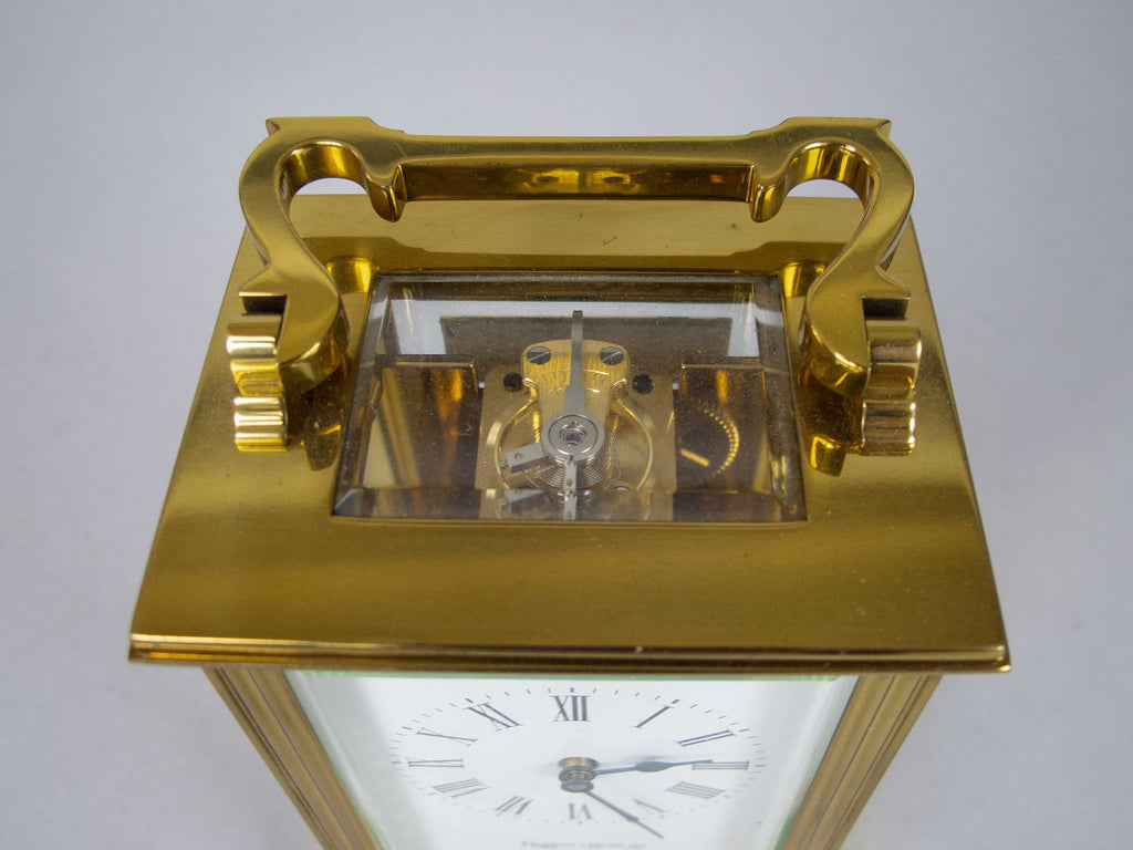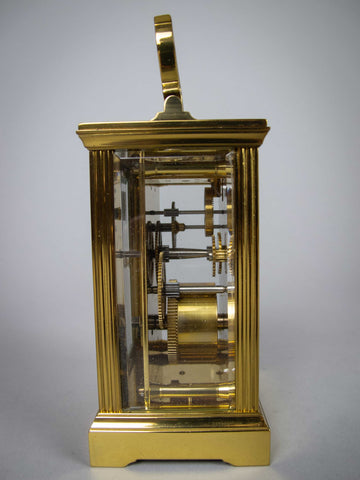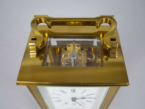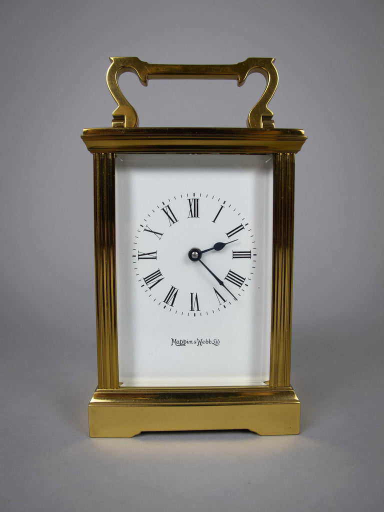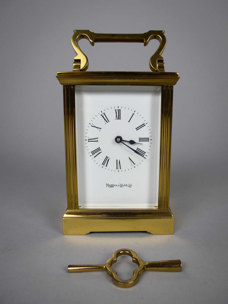 A Mappin & Webb brass carriage clock in near mint condition and perfect working order, together with original winding key.