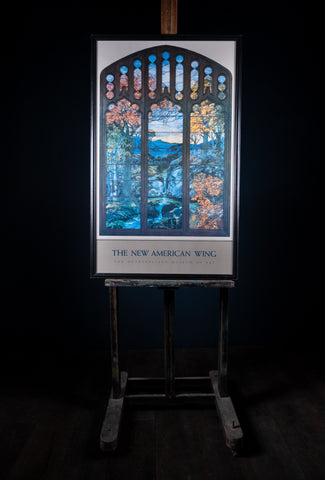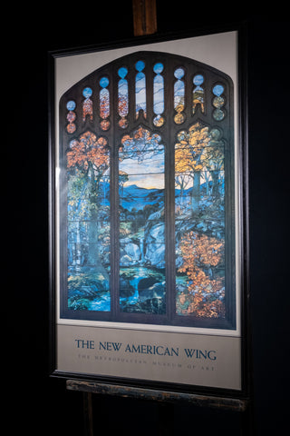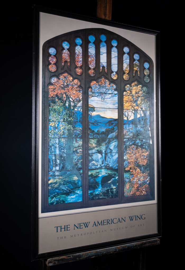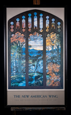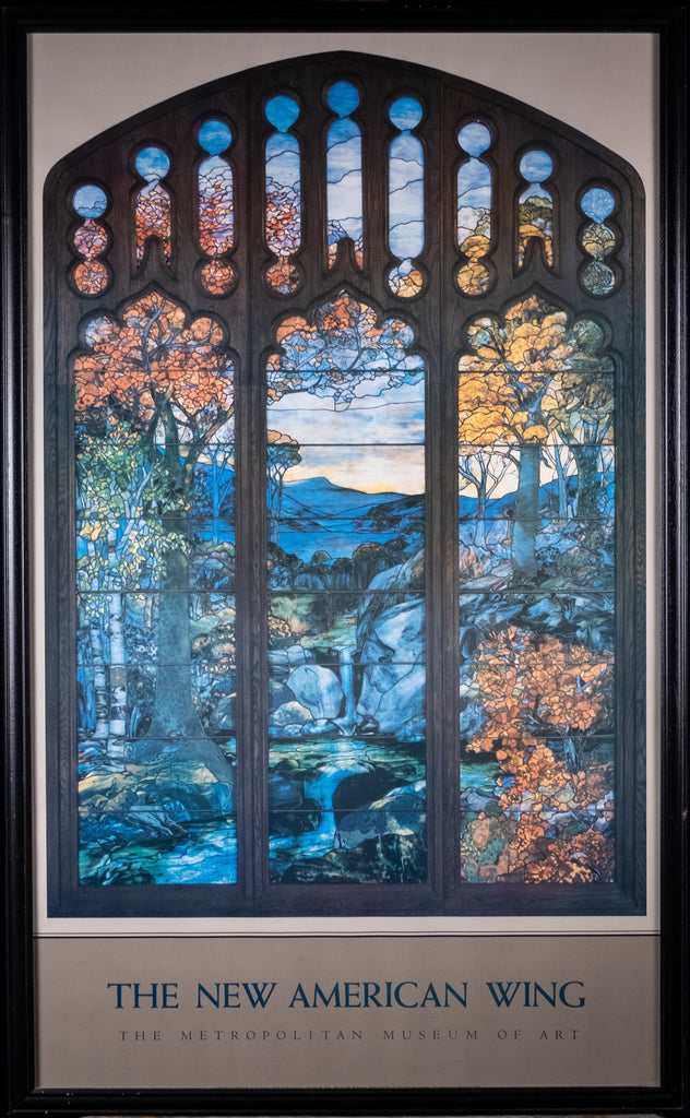 A fantastic original Metropolitan Museum Of Art 'Autumn Landscape' Poster, depicting the sublime 'Autumn Landscape' stained glass window by Louis Comfort Tiffany.
