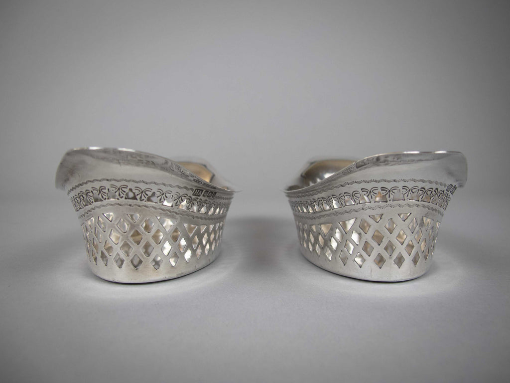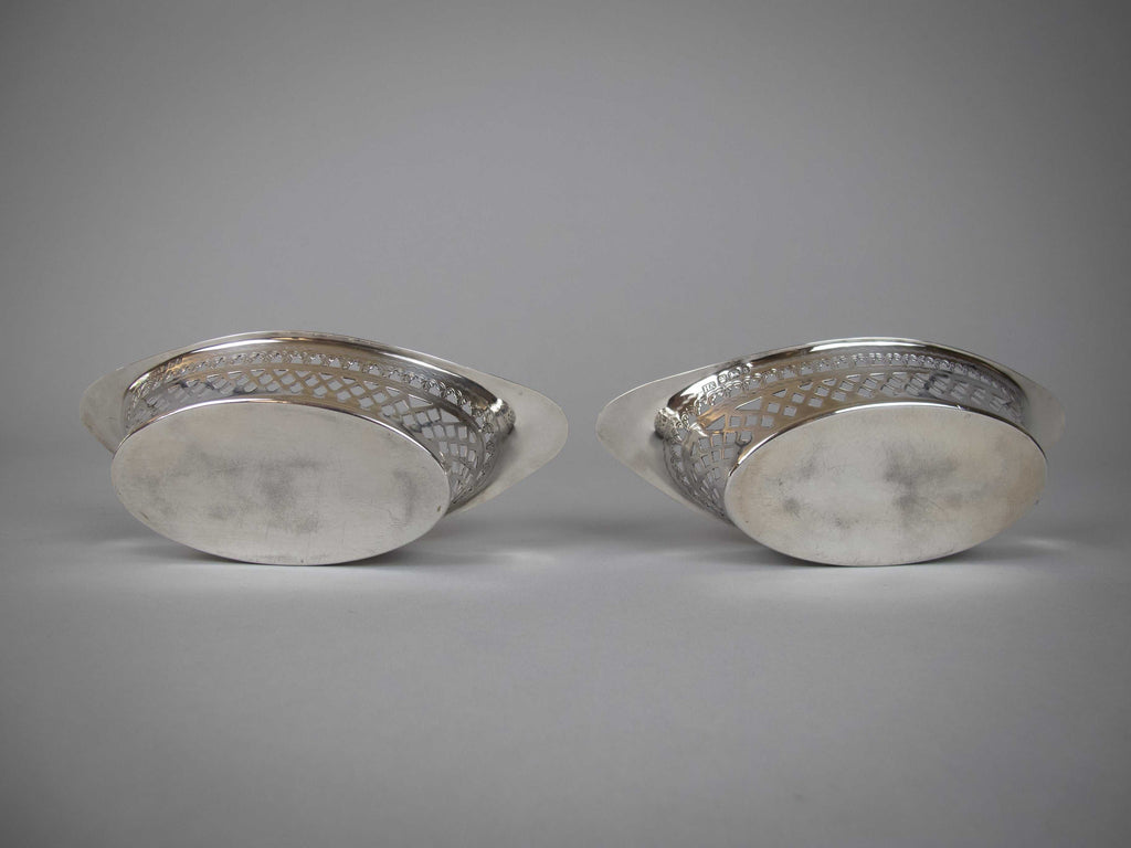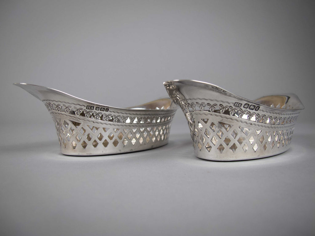A pair of solid sterling silver bon bon dishes by Atkin Bros, Sheffield. Dated 1899 and 1900.