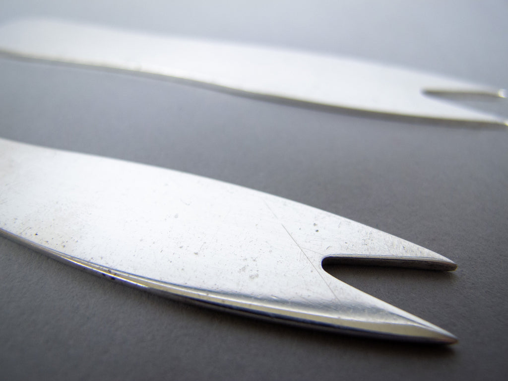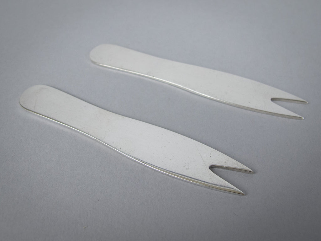 Pair of Sterling Silver Chip Forks by Camelot Silver Ltd, Sheffield, 2001