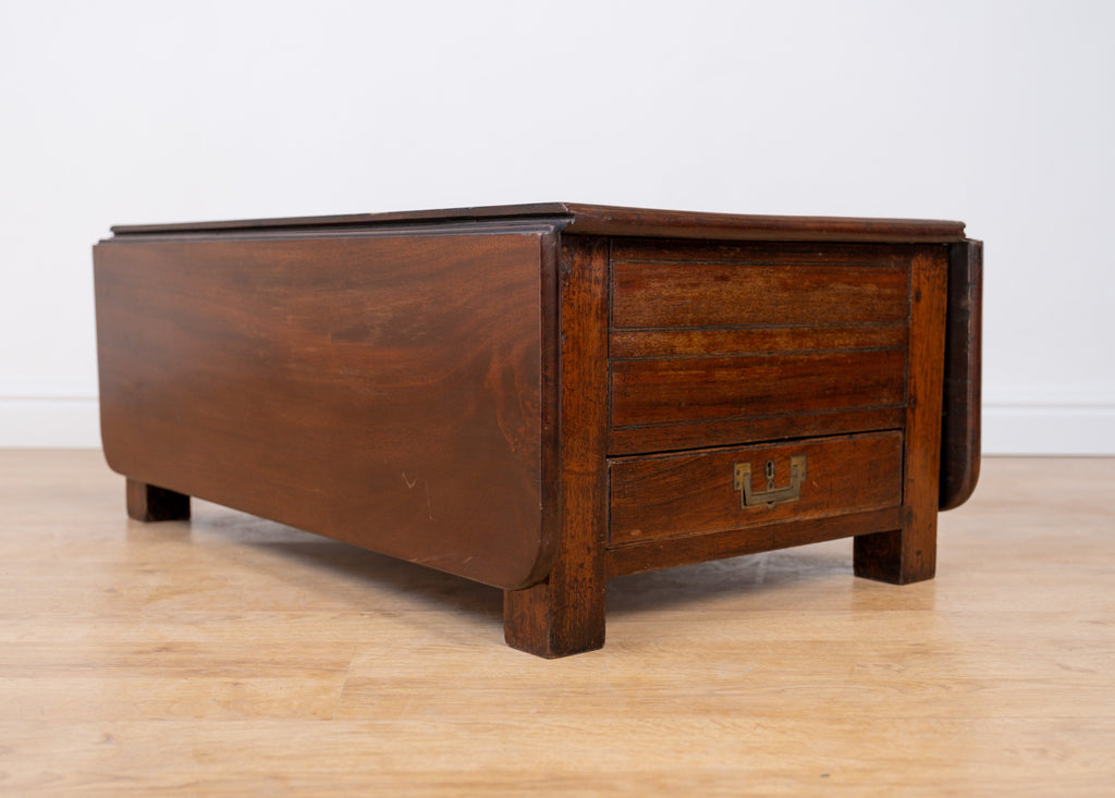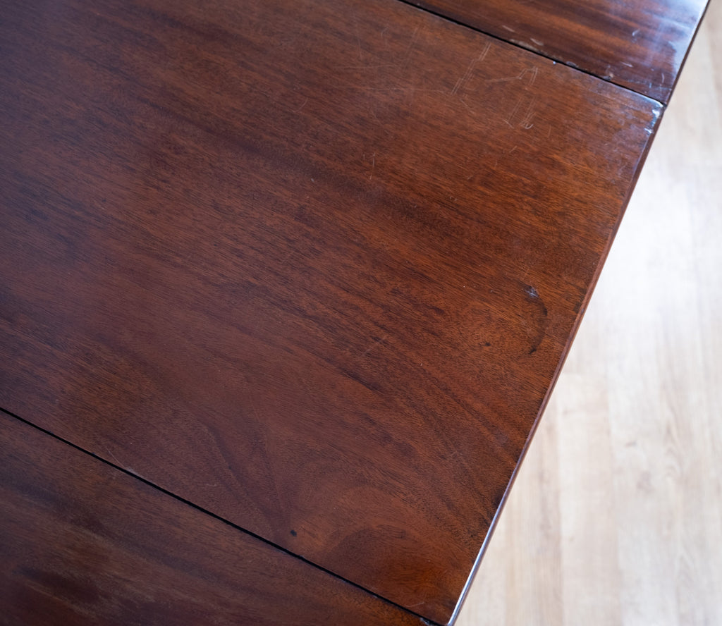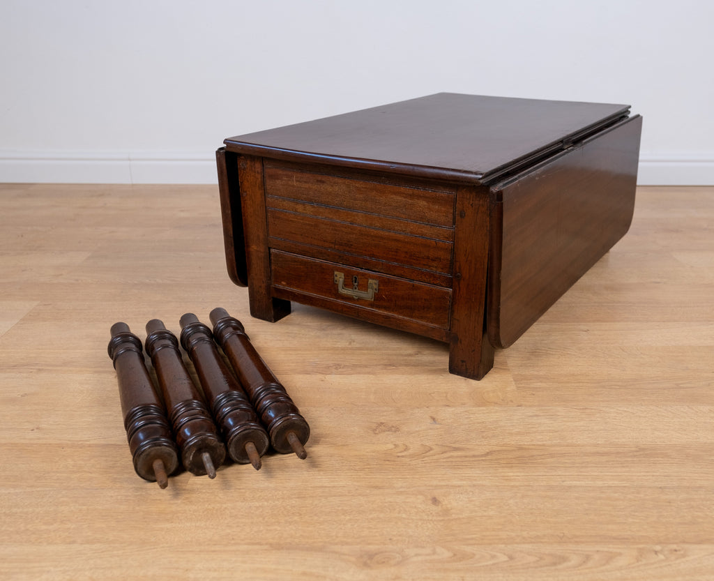 A Regency period mahogany metamorphic campaign desk / dining / dressing table in original condition. Illegible maker's stamp just visible through an opening in the central carcass (please see photographs).