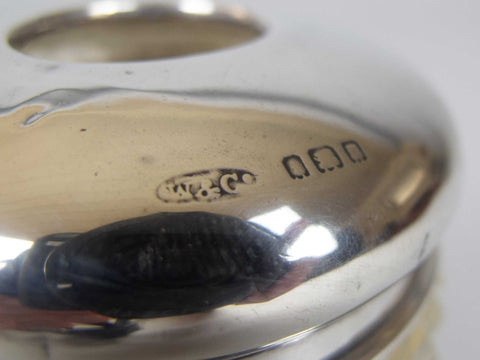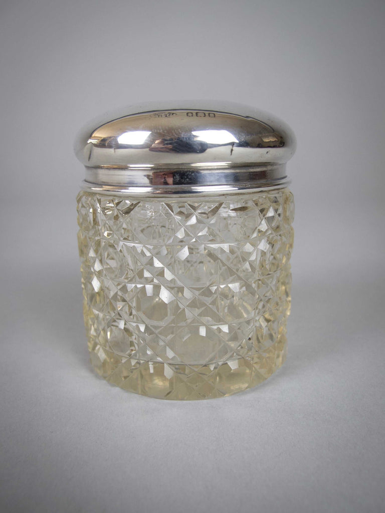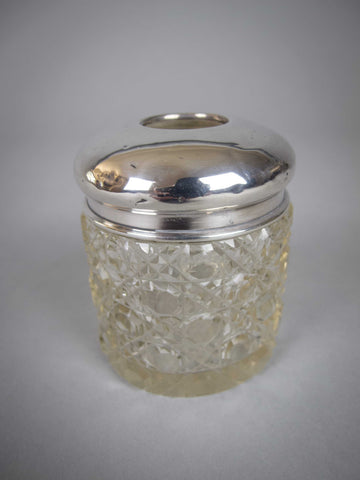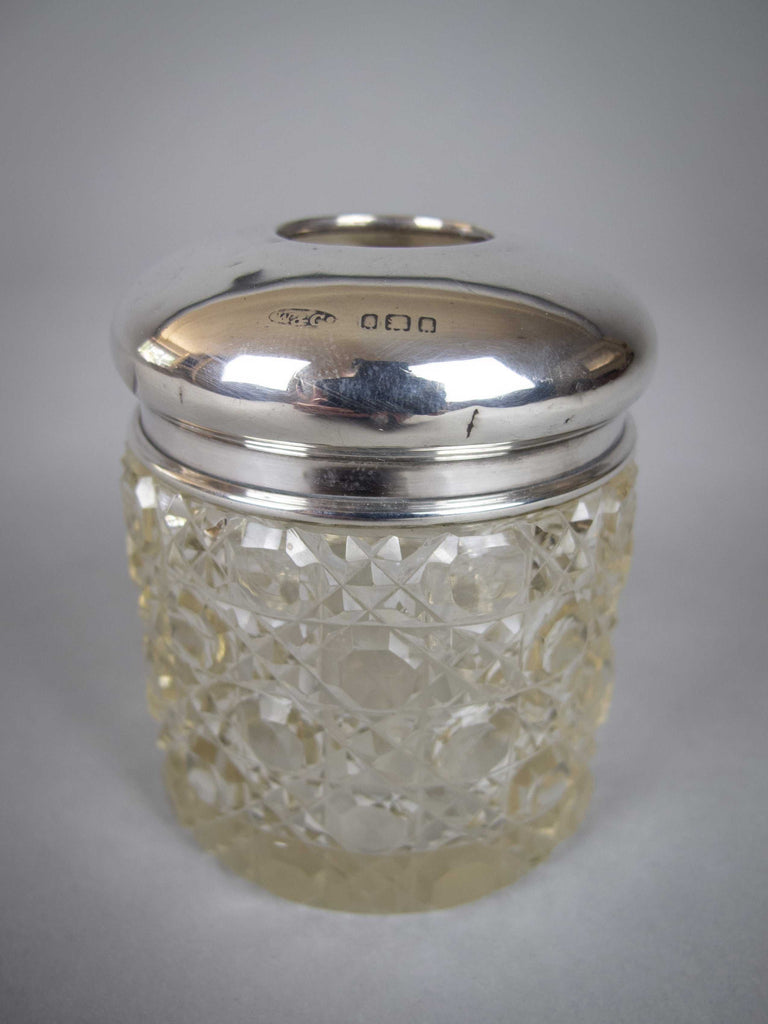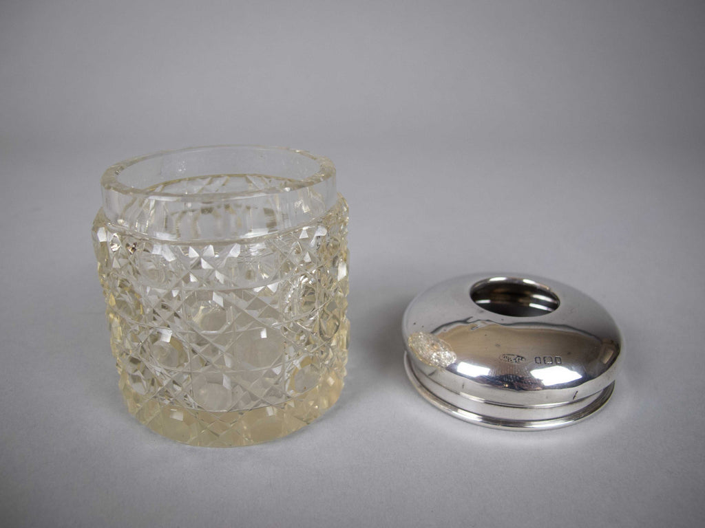 Sterling Silver & Cut Glass Hair Tidy / Dressing Table Pot. Wolfsky & Co, Birmingham, c.1921