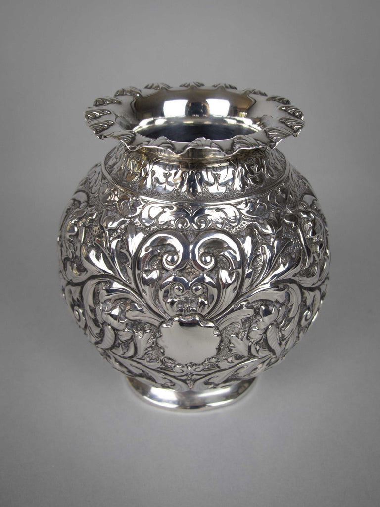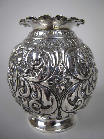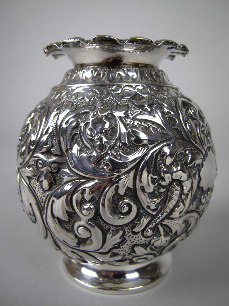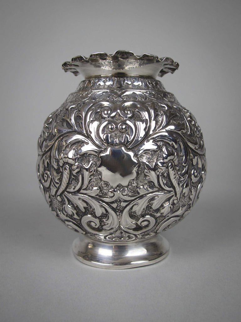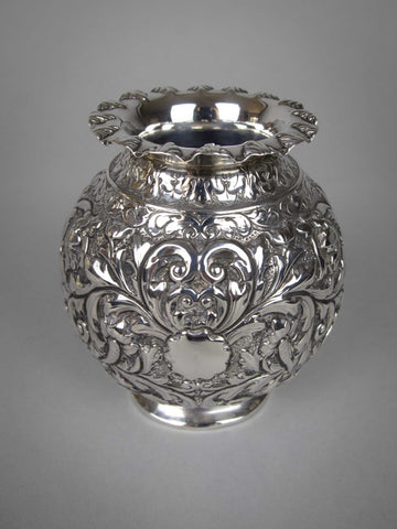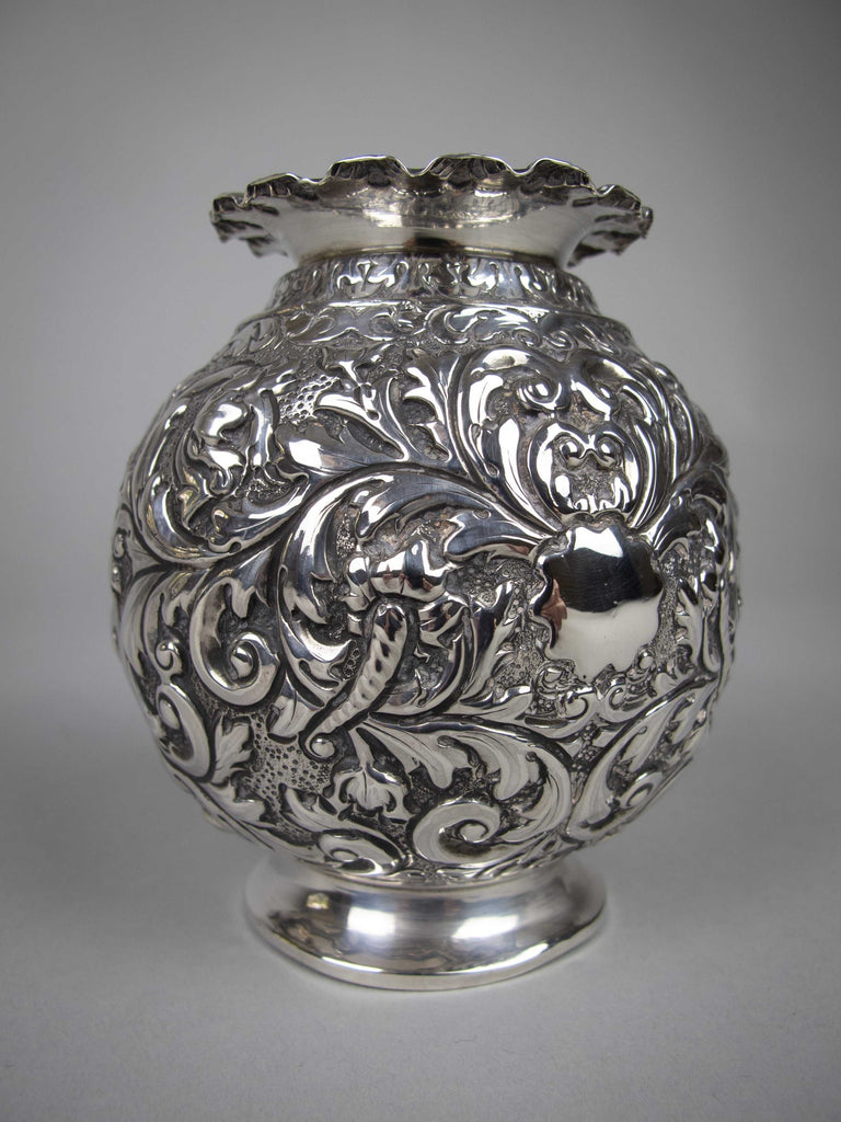 A lovely Victorian sterling silver vase of globular form by Horace Woodward & Co, London, 1891.