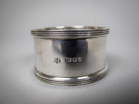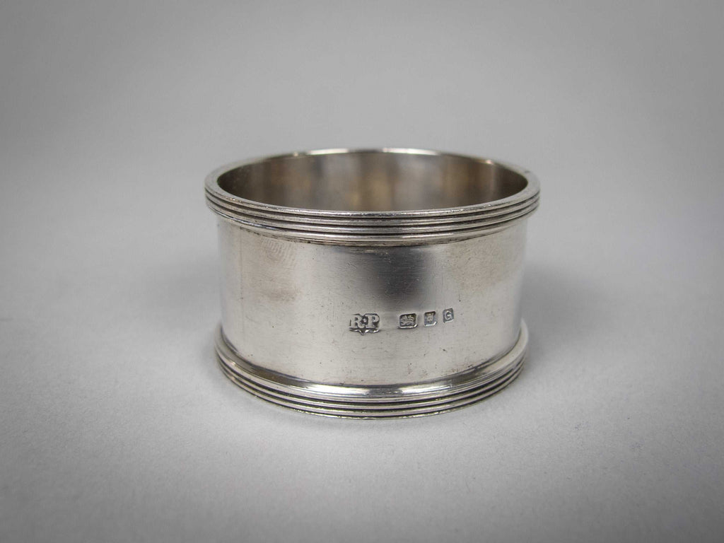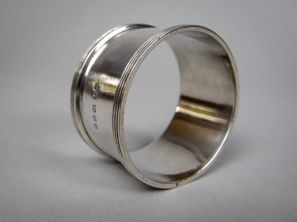 The napkin ring is fully and clearly hallmarked for Robert Pringle & Sons, London with a date stamp for 1942.