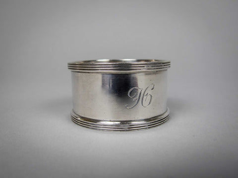 The napkin ring boasts an embossed 'H' to the front. The ring is in a good condition overall with some light scratches consistent with age.