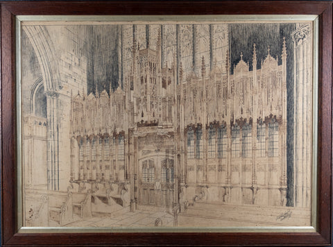 Large Architectural Pen & Ink Drawing Of A Cathedral, Dated 1908