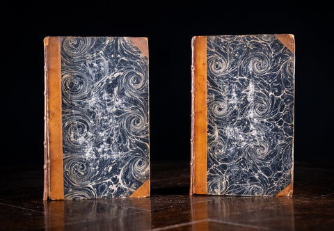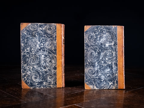 Both volumes are three quarter bound in a tan leather with gilt-stamped title and five raised bands to the spine. Marbled boards. Both volumes have shelf wear to the extremities. Volume I has wear to the title panel. The binding of Volume II is a little weak but does remain bound.