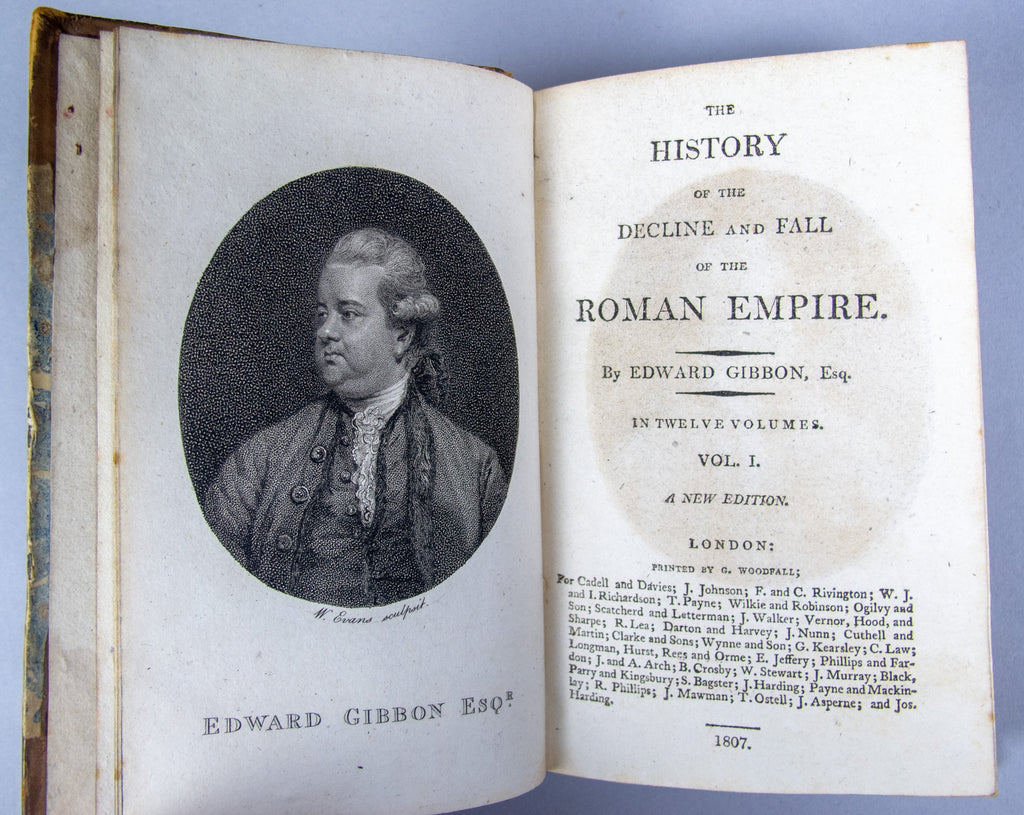 'The History Of The Decline And Fall Of The Roman Empire' by Edward Gibbon, printed by G. Sidney, London, 1807. The set is complete in 12 volumes.