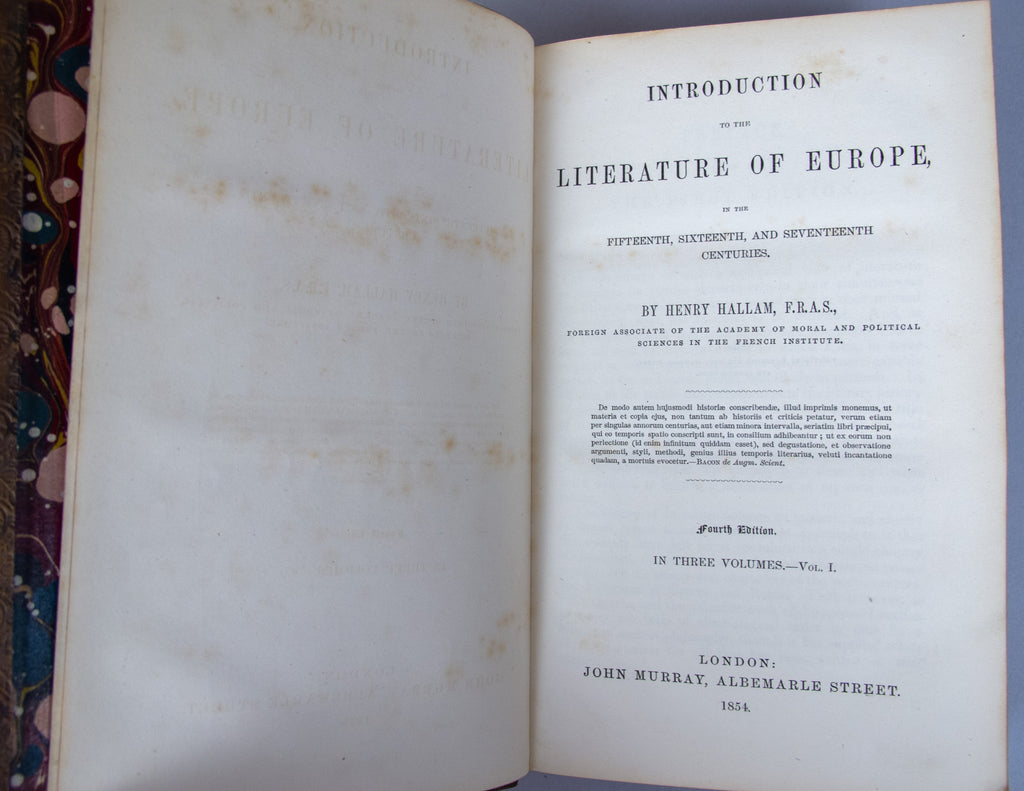 - Introduction To The Literature Of Europe, 1854 - 3 vols.