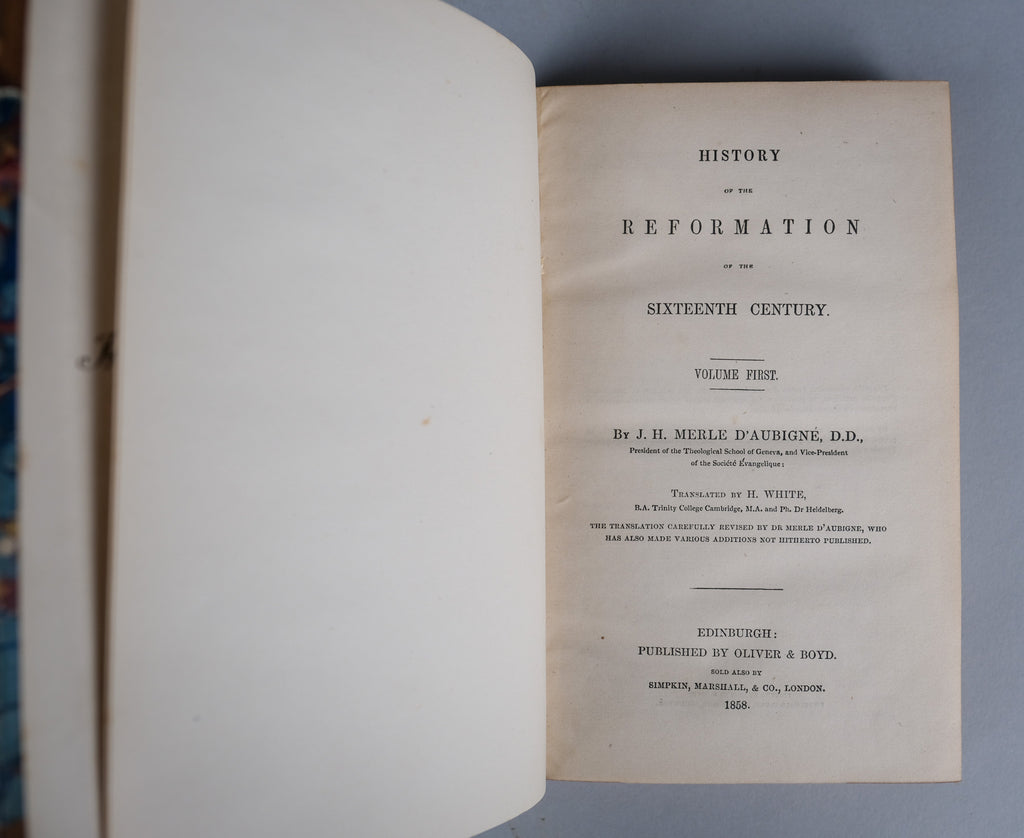'History Of The Reformation Of The Sixteenth Century' by J. H. Merle D'Aubigne, published by Oliver & Boyd, Edinburgh, 1858. Complete in five volumes.