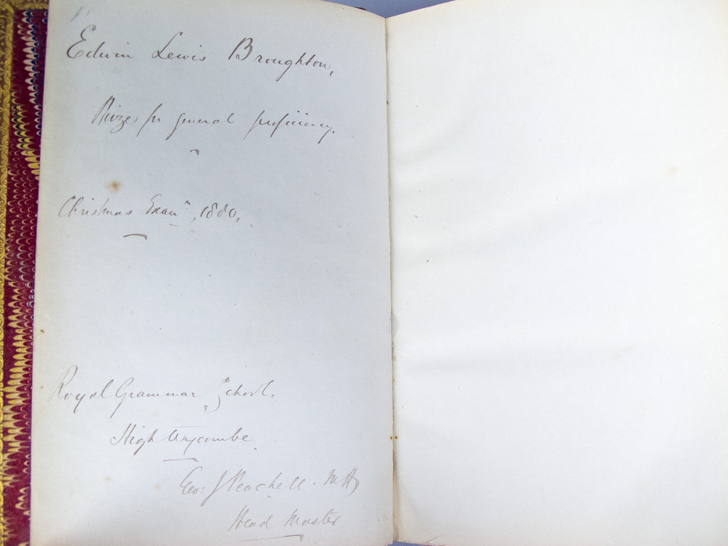 Marbled page edges and endpapers. Ink inscription to the front flyleaf dated 1880. All pages are clean and bright.
