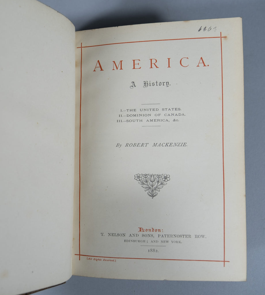 A scarce copy of 'America, A History' by Robert Mackenzie, published by T. Nelson and Sons, London, 1882.
