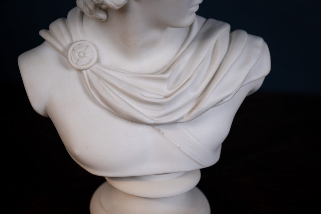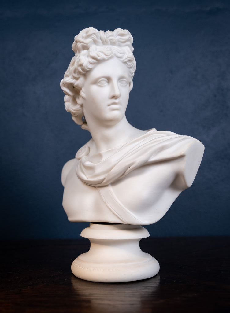 A 19th century Art Union Of London Parian bust of Apollo modelled by C. Delpech, dated 1861.