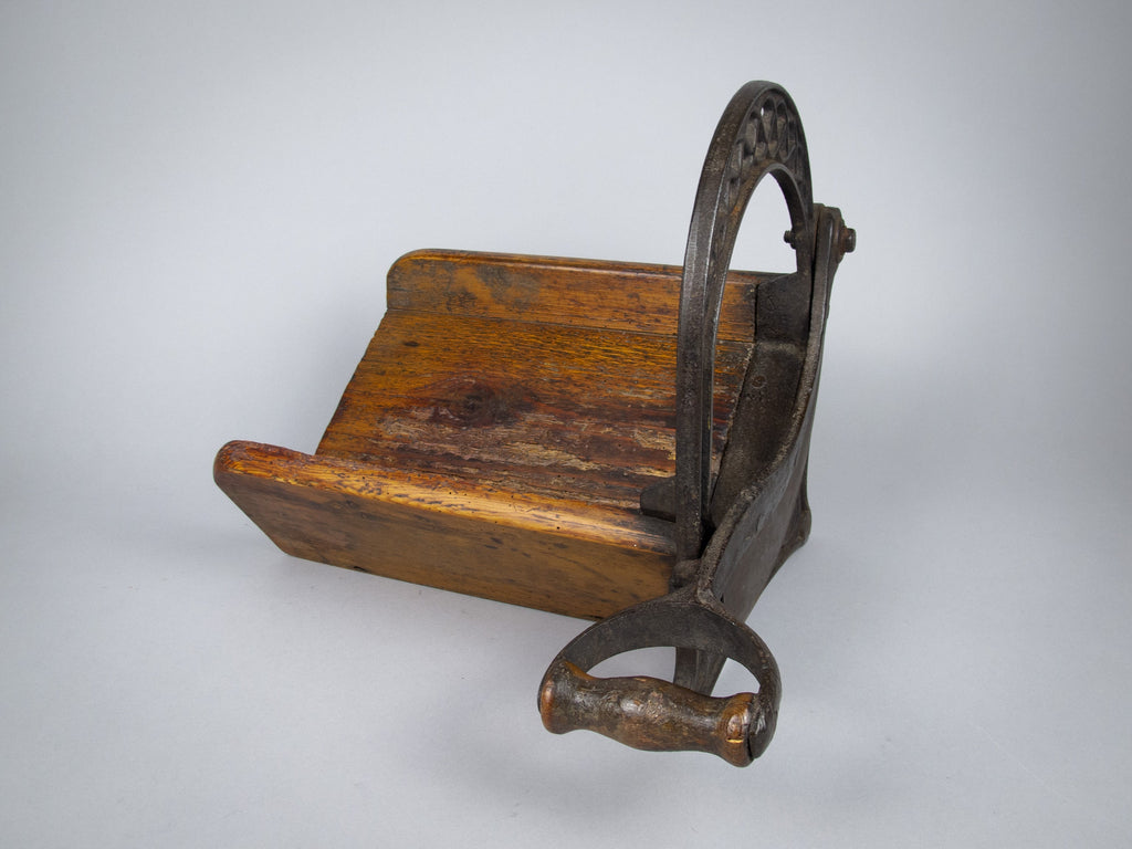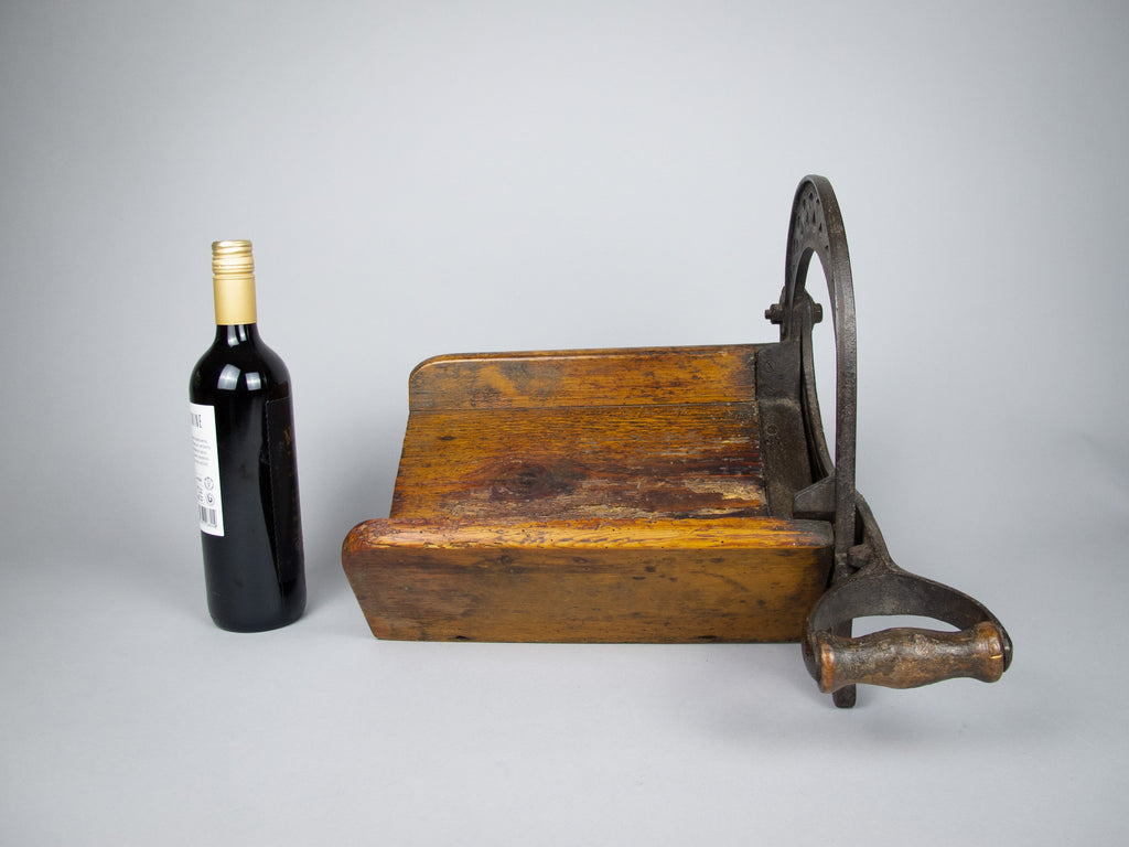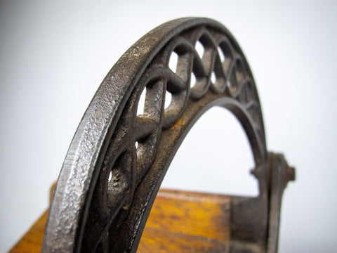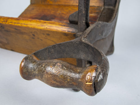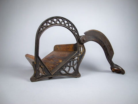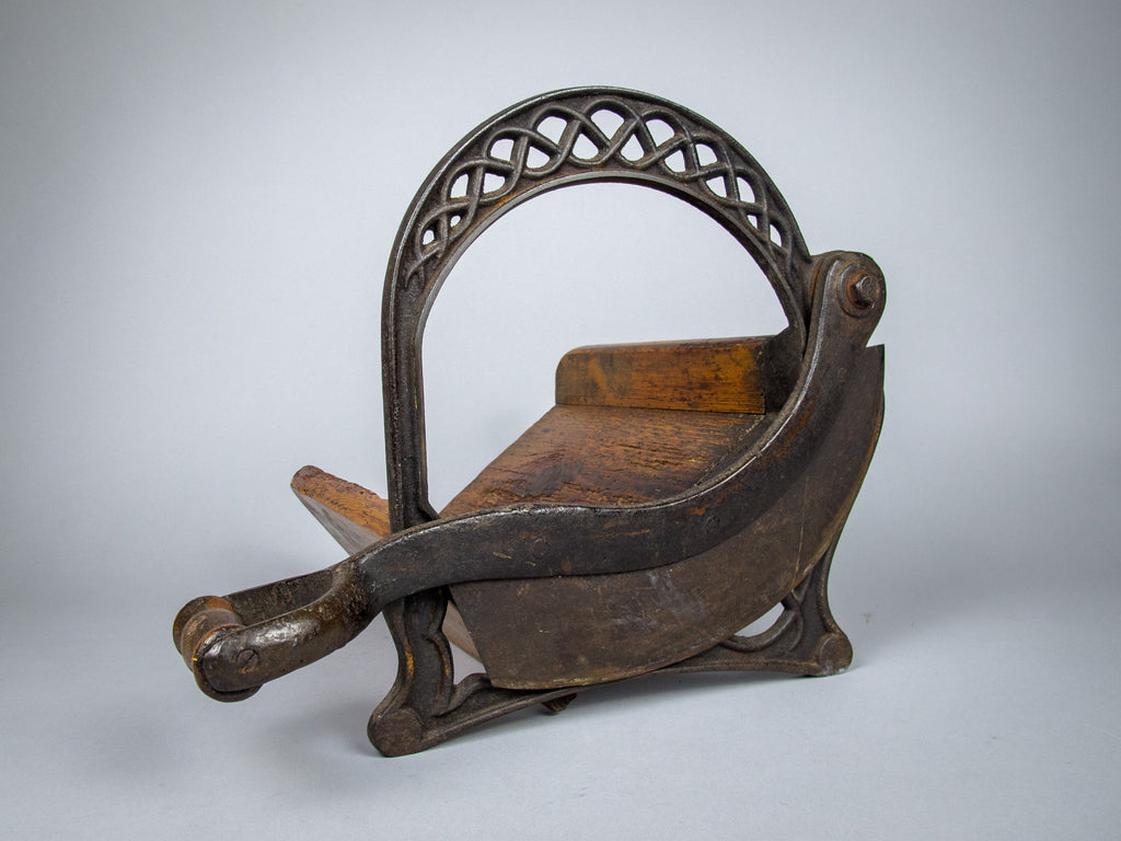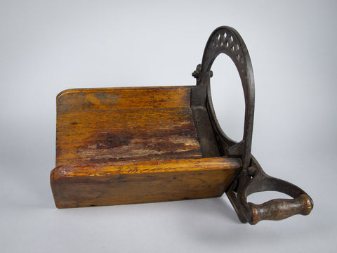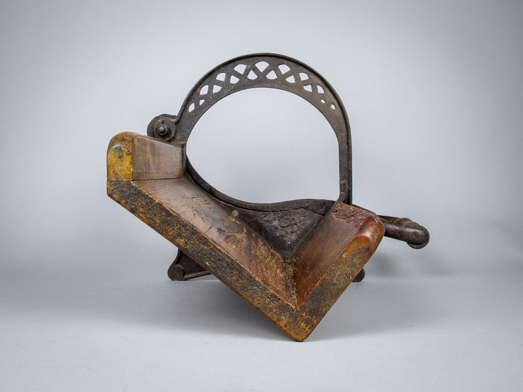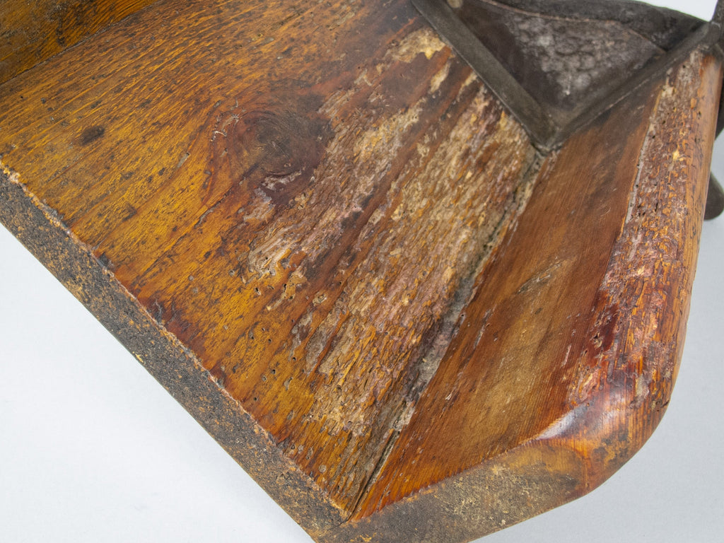 The wooden bread shelf shows signs of historic woodworm which adds to its character, and the iron boasts a wonderful pierced art nouveau design. The piece has a wonderful patina throughout, particularly to the handle where years of use is evident.