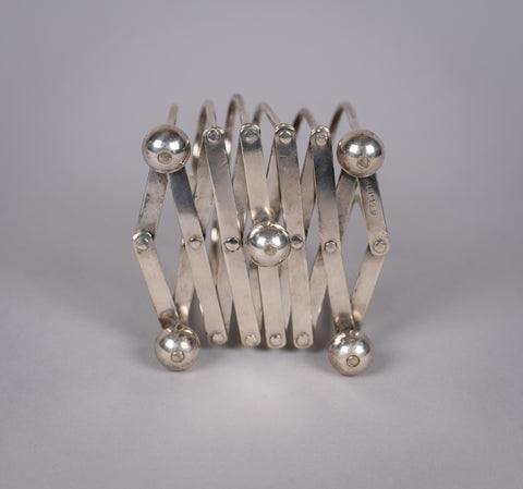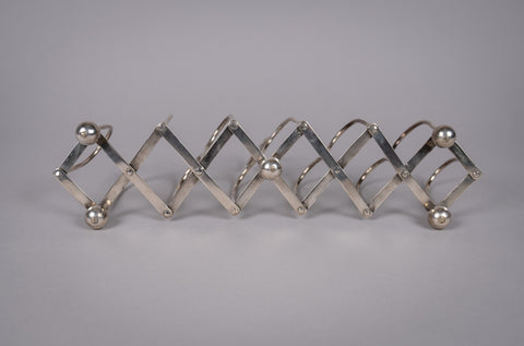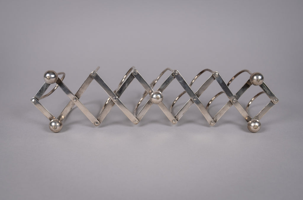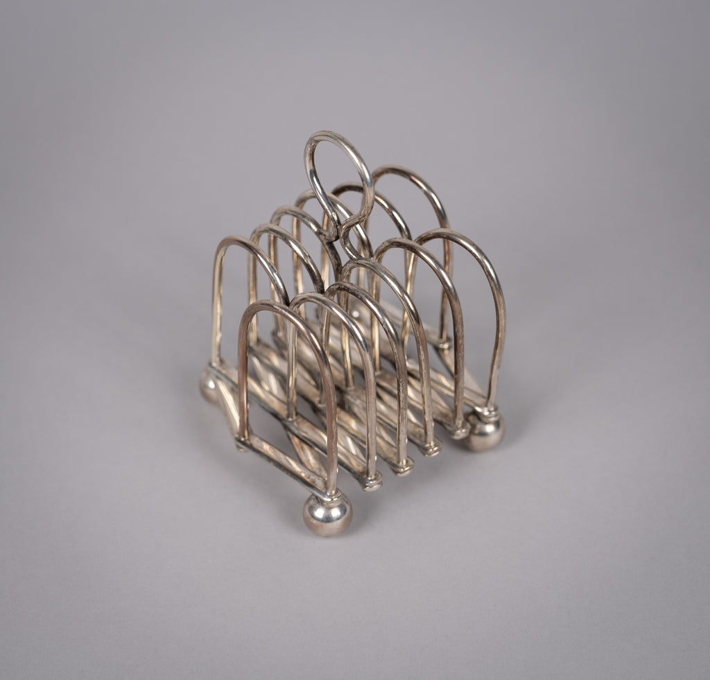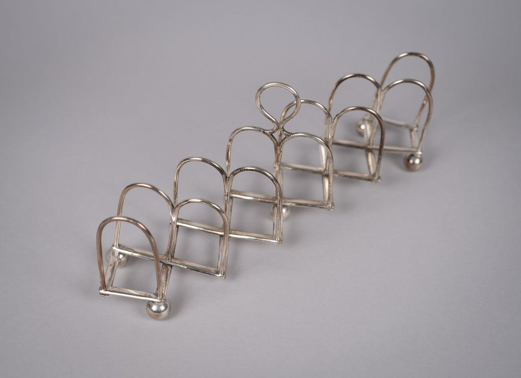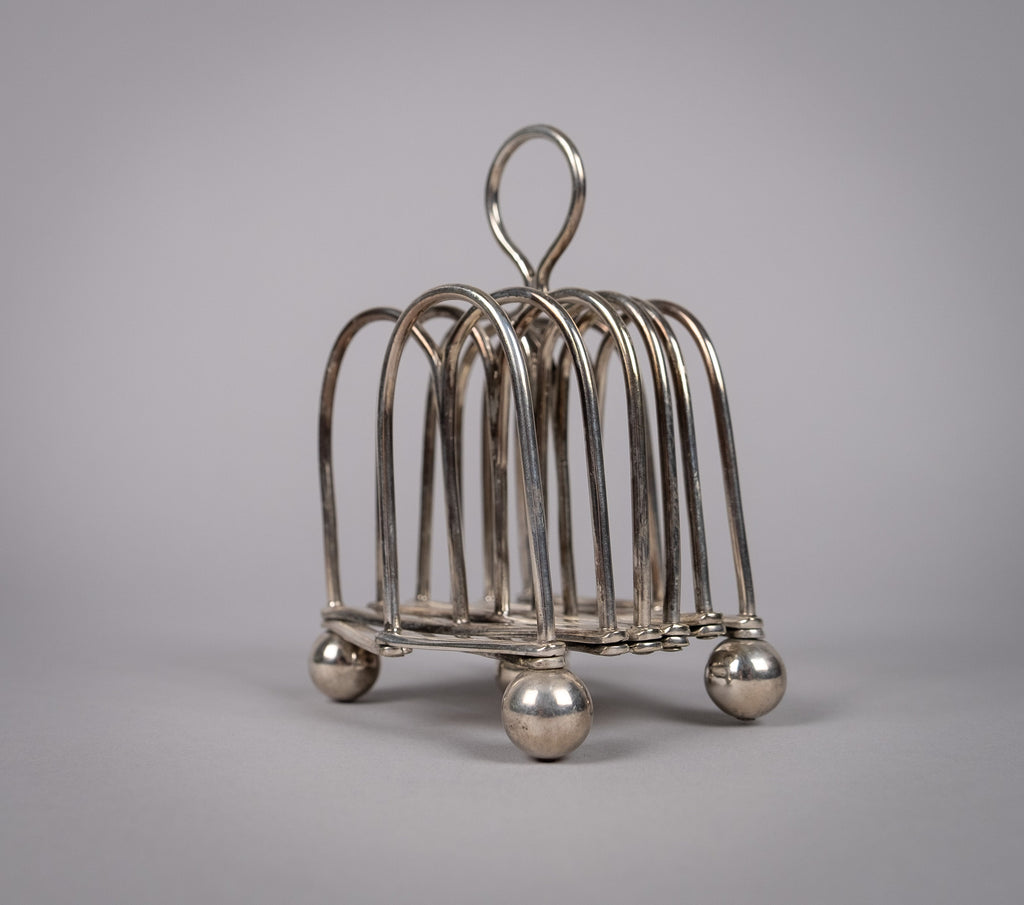 A 19th century concertina silver plated seven-bar toast rack. The first symbol of the maker's mark is rubbed but 'B & Co' remains clearly visible. Possibly AB & Co for A. J. Beardshaw & Co, Sheffield (active 1863-1866).