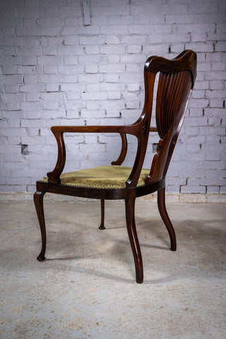 A very attractive 19th century mahogany art nouveau carver chair in the manner of J. Shoolbred, c.1880.