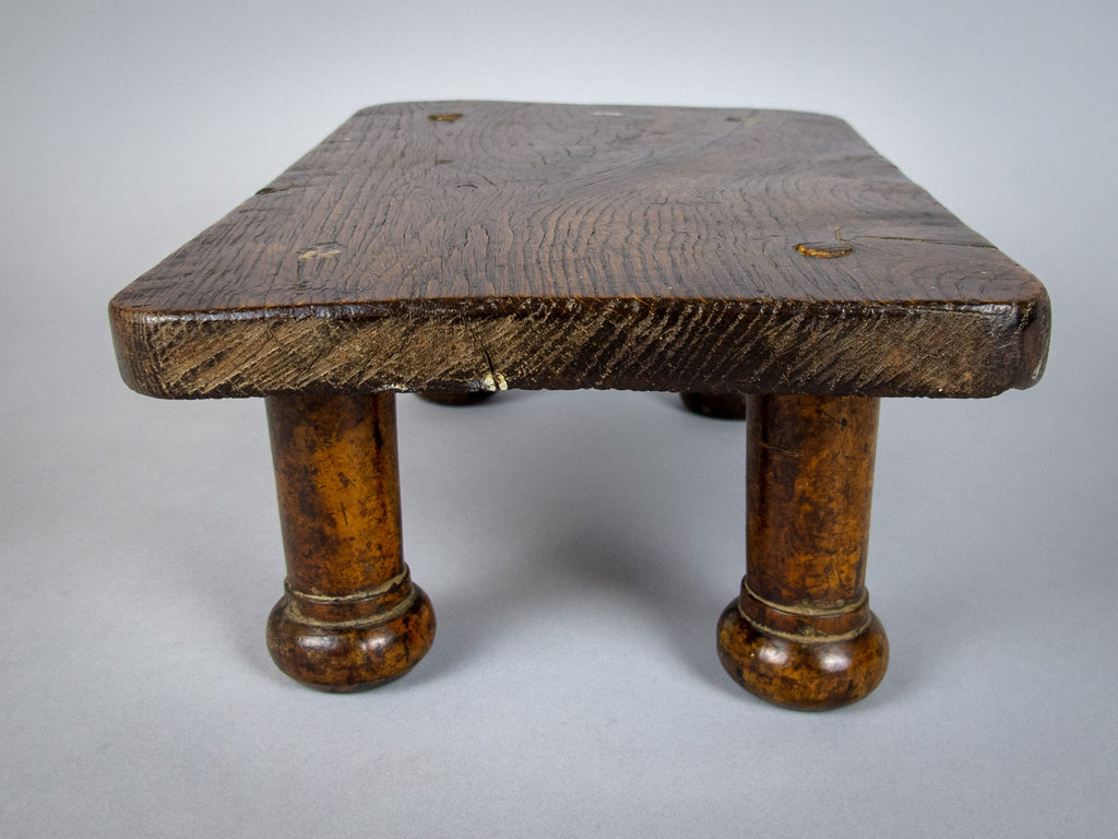 The stool is of pegged construction with unusual turned legs. The wood is full of character and has a lovely warm colour throughout.