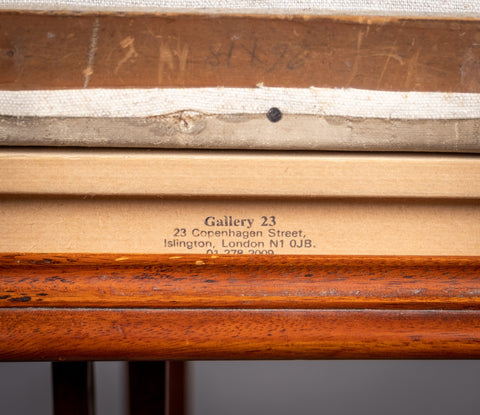 The work demonstrates excellent use of colour and light to the landscape whilst the sheep and lady are naively portrayed. The work is housed in a later maple frame. The frame is stamped 'Gallery 23, London' verso, however as the frame is later, it cannot be said with any certainty that this work that was displayed within it.