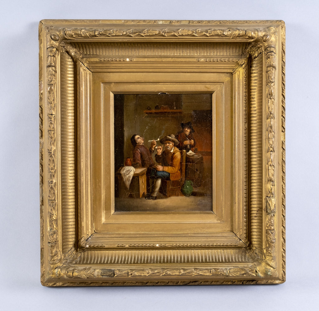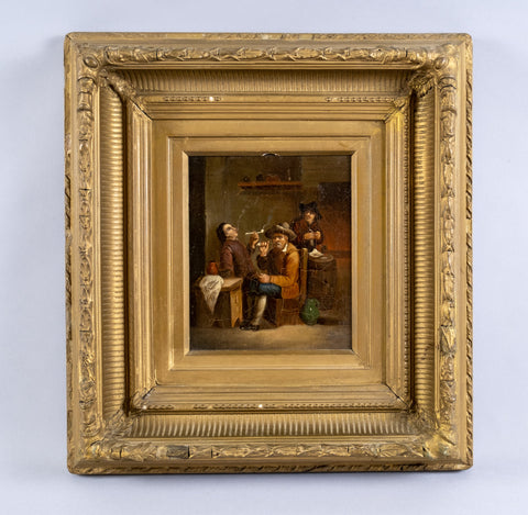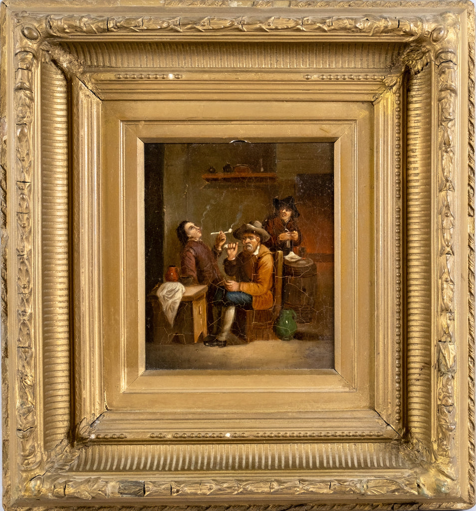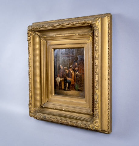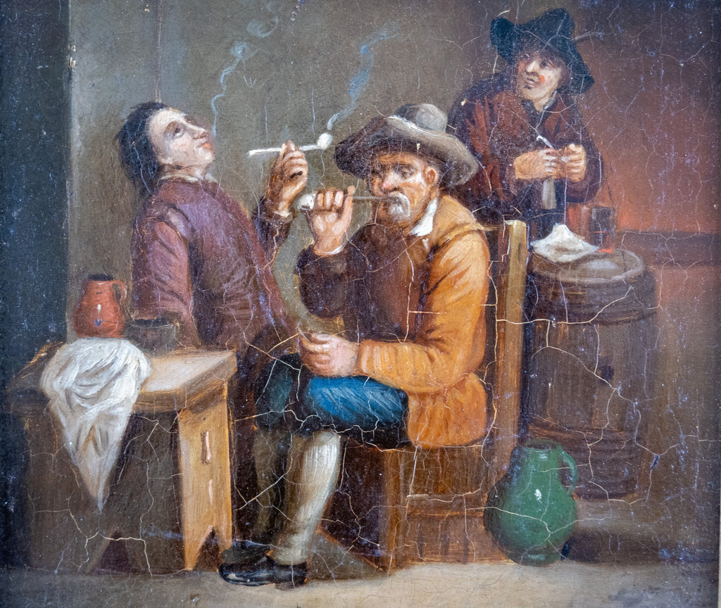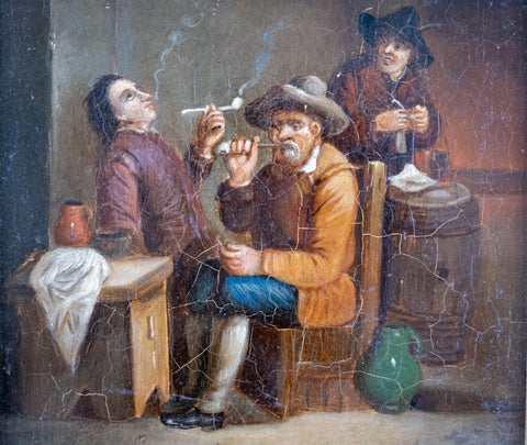 A 19th century oil on tin of medium proportions depicting smoker's in a tavern after David Teniers The Younger (1610-1690).