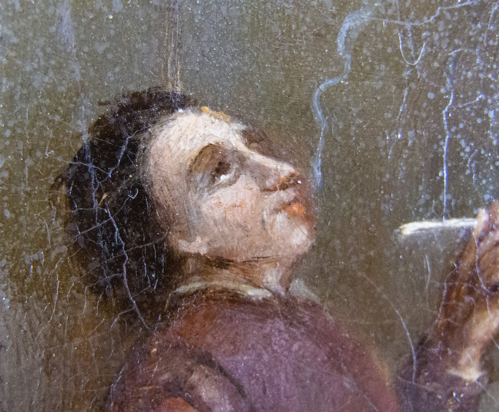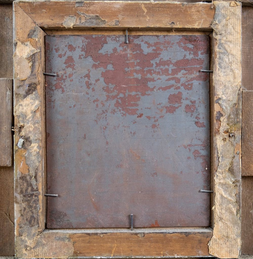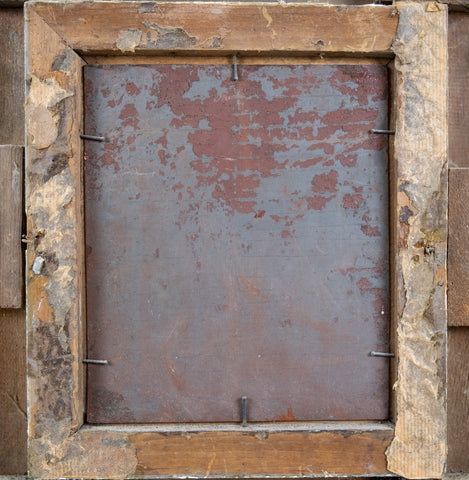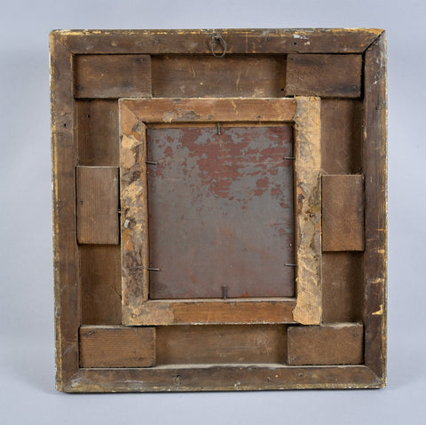 The work is housed in a substantial gilt frame with some losses, most of which have been historically painted over. The most notable loss is a small chip to the top of the frame opening (please see photographs).
