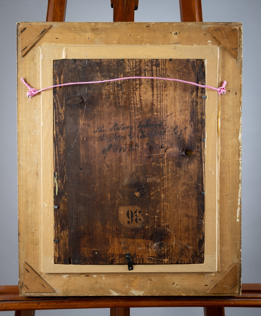 The work is very well executed with great verve. There is a light craquelure in areas and a linear indentation to the canvas to the top left (please see photographs) but overall the work remains in a very good condition throughout. The work is housed in a gilt frame with a cream canvas mount. There is a partially legible inscription verso.