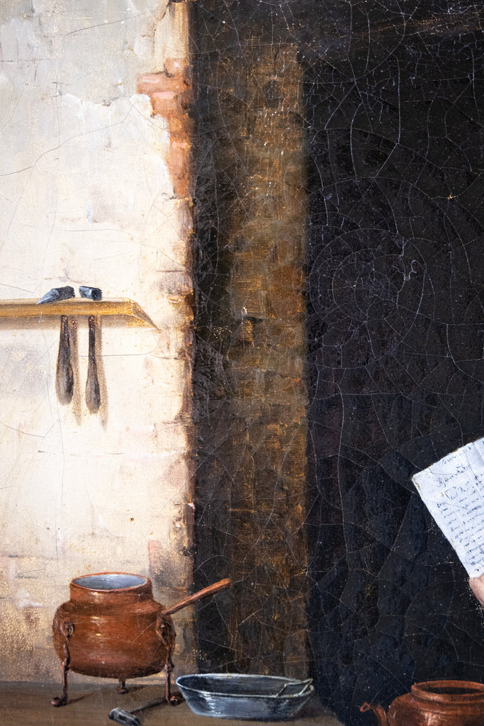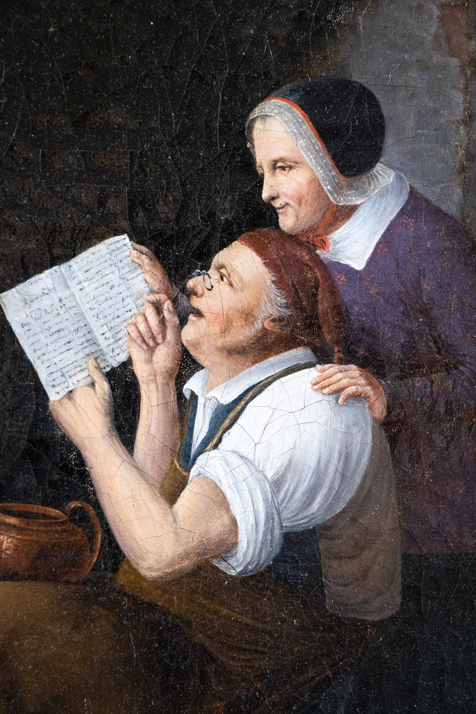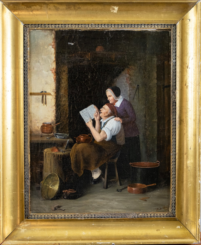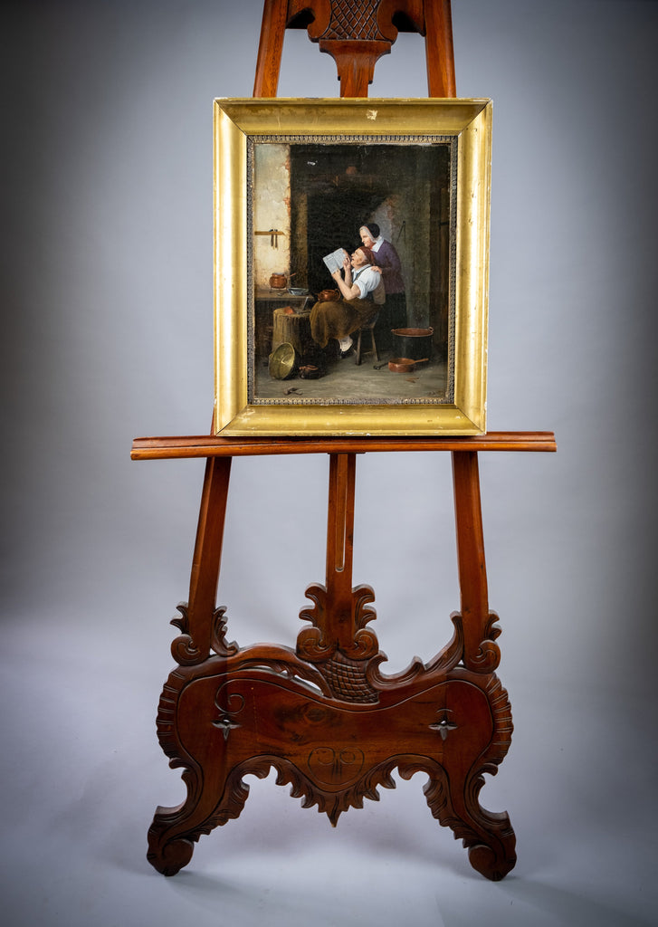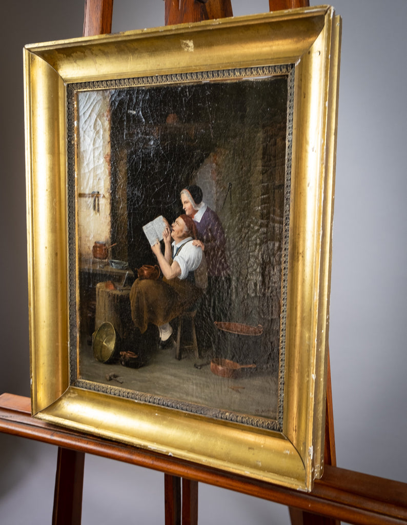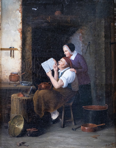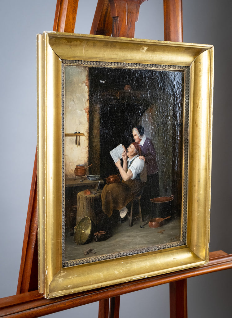 A 19th century oil on board by the circle of Oluf Simony Jensen (Danish, (1864-1923), depicting his work 'Letter From America'.