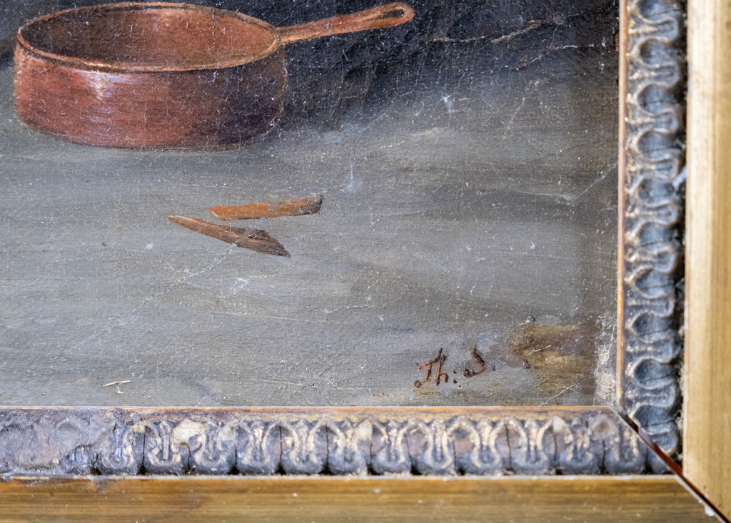 The work is very well executed boasting exceptional detail and use of colour. The work has craquelure throughout and a small area of paint loss to the top left. An indistinct signature can be found to the lower right.