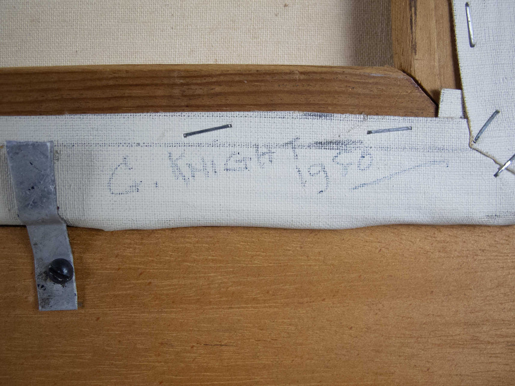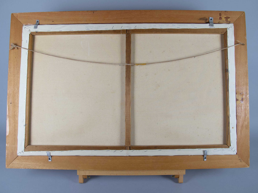 The oil painting is of large proportions (see below). The oil is painted on canvas with an ornate gilt frame. Note the frame clips to the rear of the canvas, giving the illusion of a full backed frame (please see photographs). The painting remains in a very good condition.