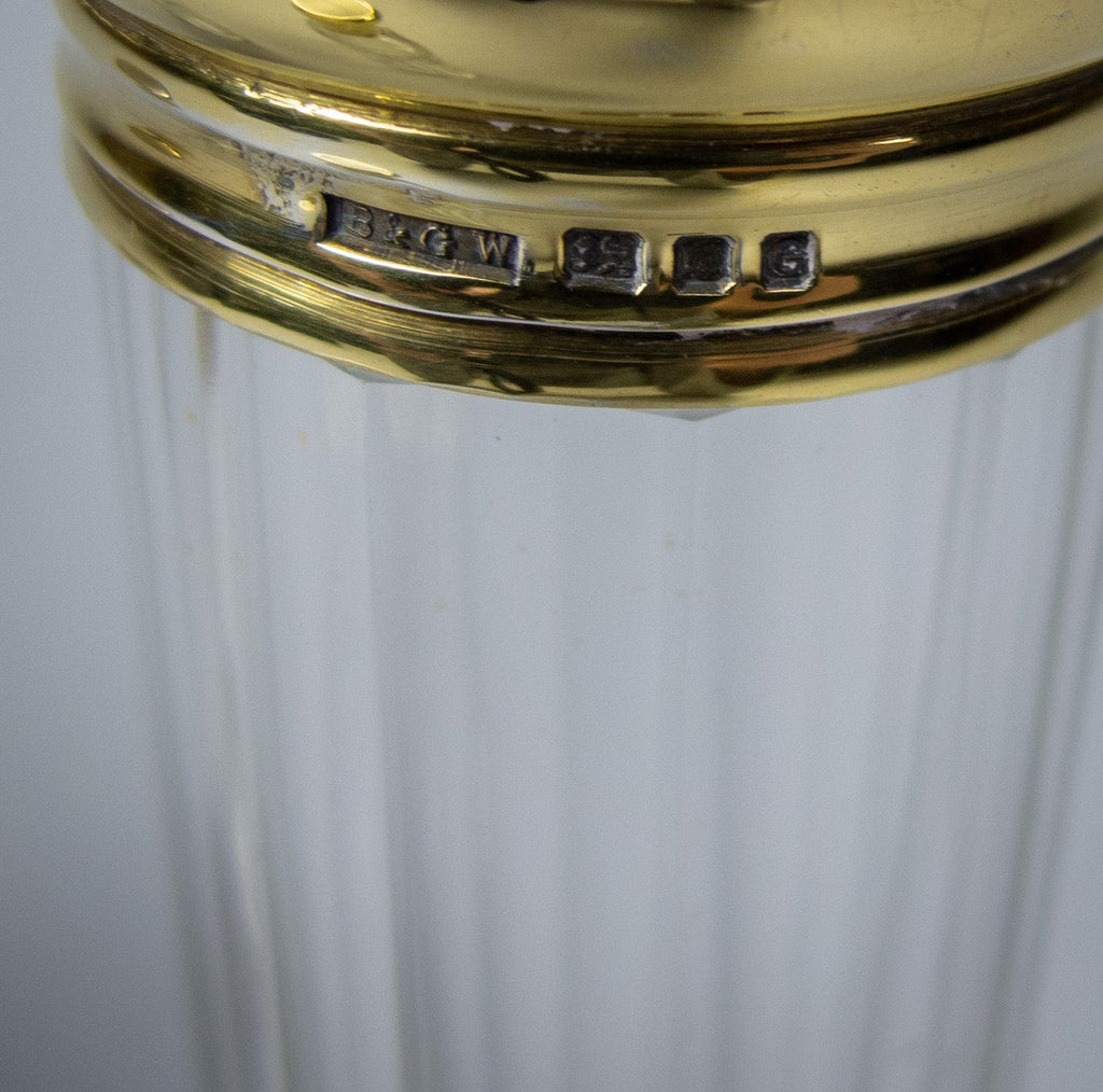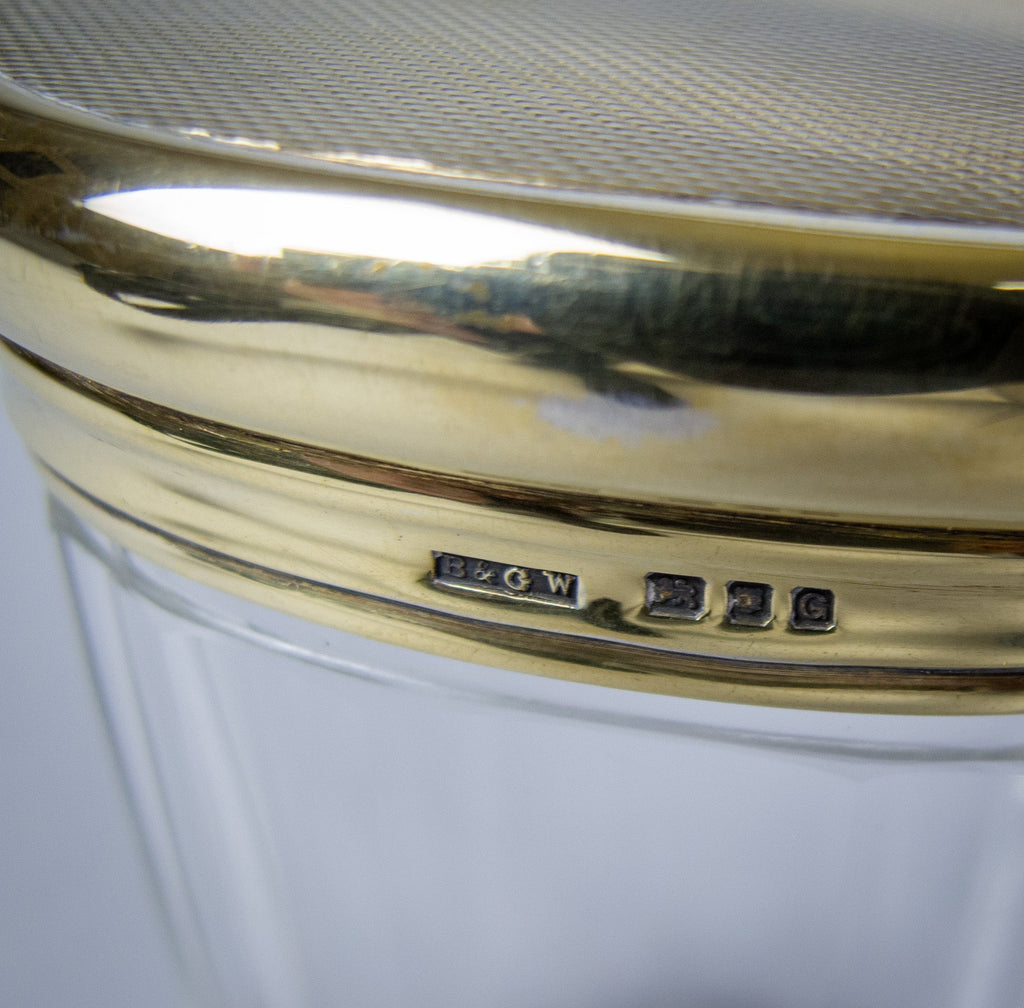 A set of three silver gilt dressing table jars of outstanding quality, each fully hallmarked for B&G West of Hatton Garden, London and dated 1942.