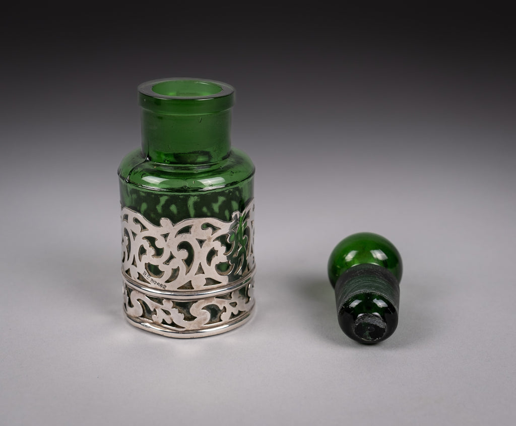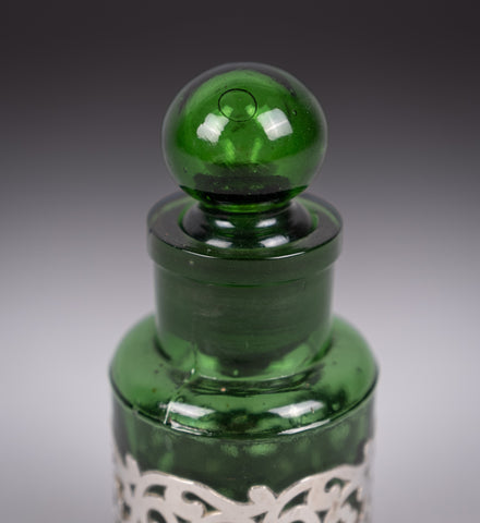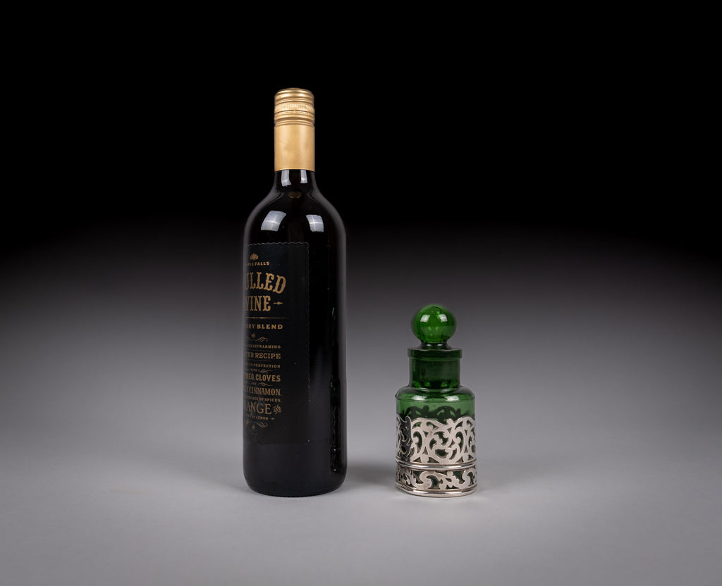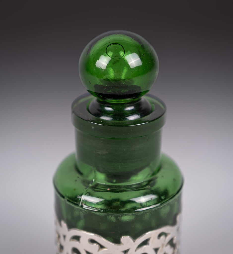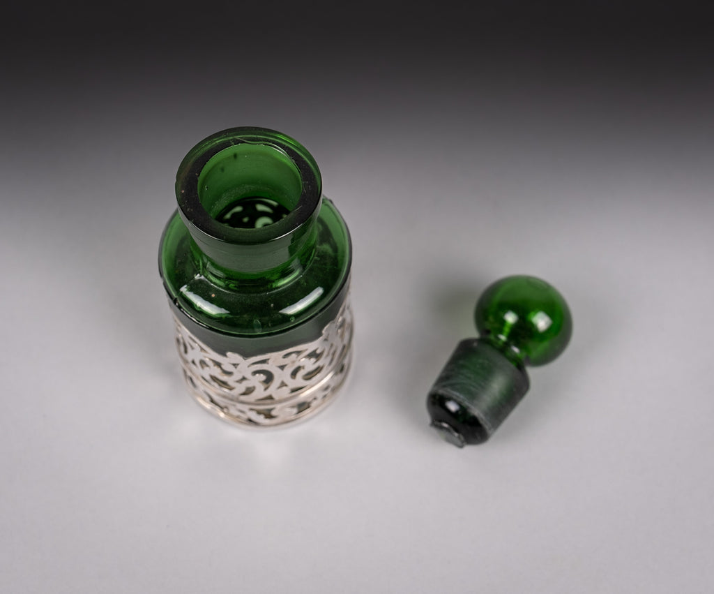Sterling Silver Emerald Green Glass Scent Bottle by William Hutton & Sons, 1903
