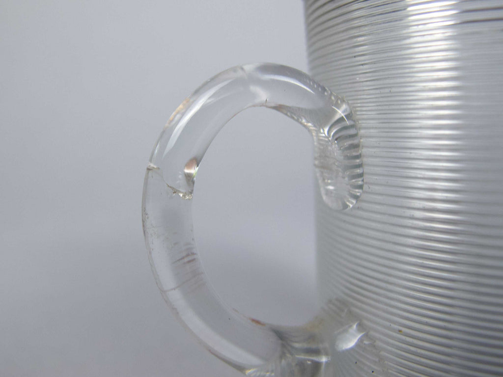 There is a small section of damage to one handle which presumably has happened subsequent to an historic drop on to a soft surface, as the damage appears to be internal to the glass handle, with the outside glass around the crack remaining smooth.