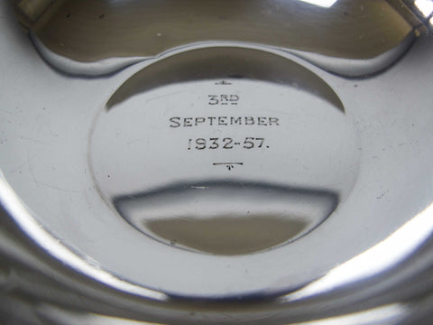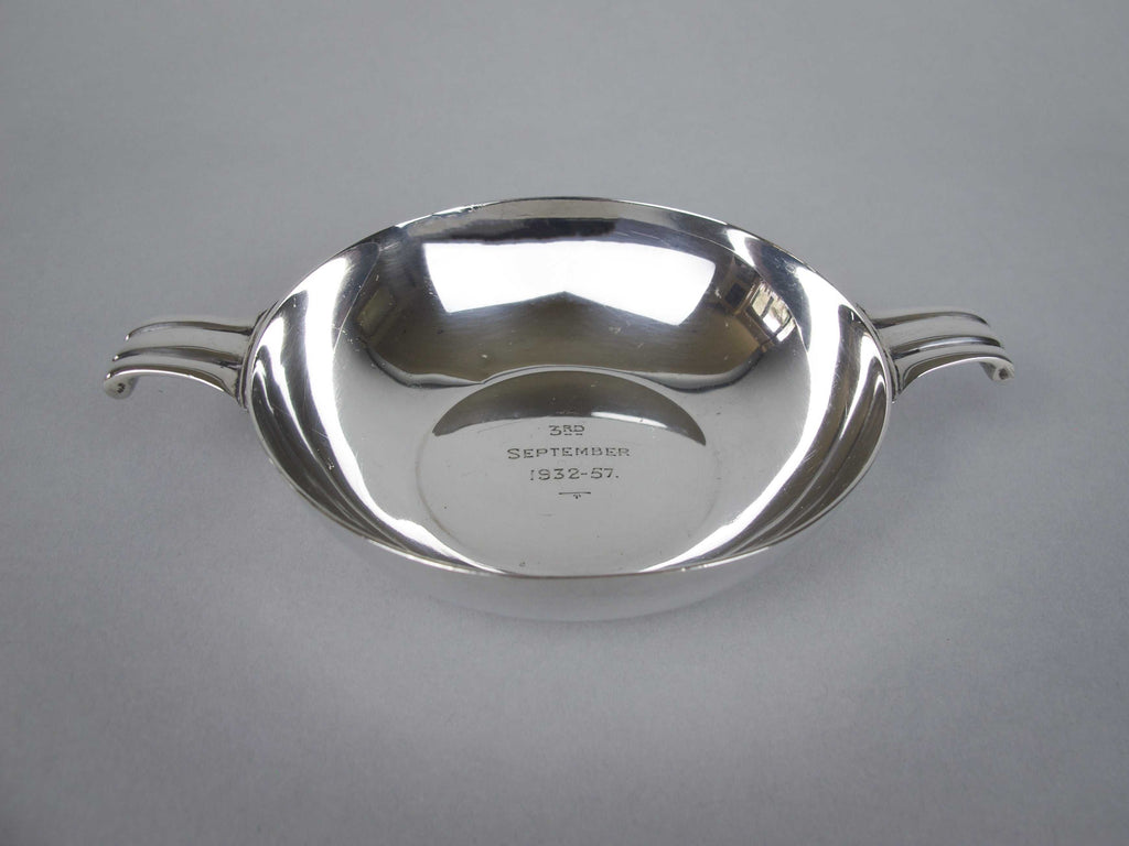 The quaich has a commemoration engraved to the inside base which reads, '3RD SEPTEMBER 1932-1957'.