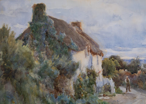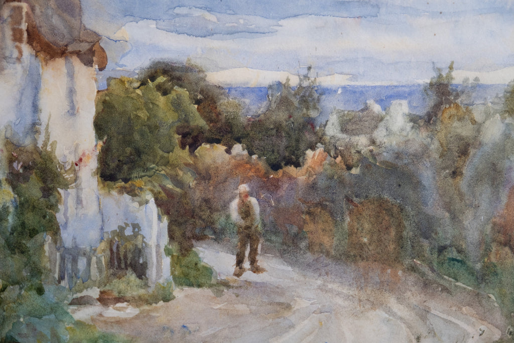 Tom Clough (1867-1943) - Figure On A Country Lane. Watercolour.