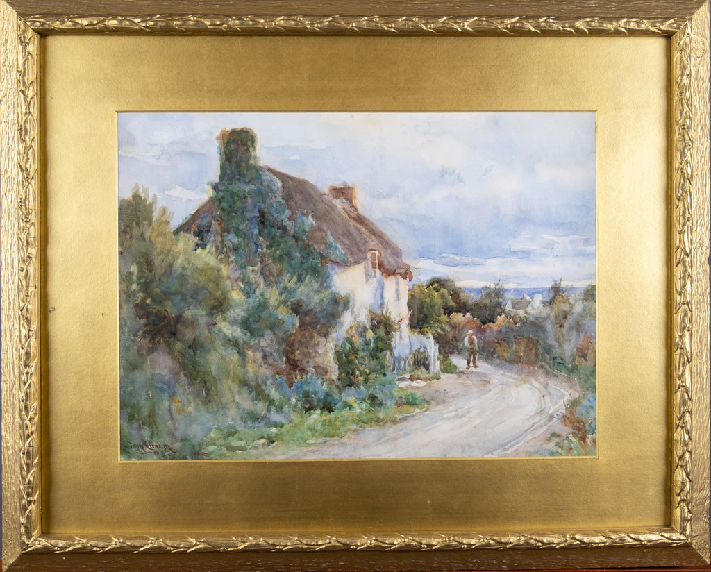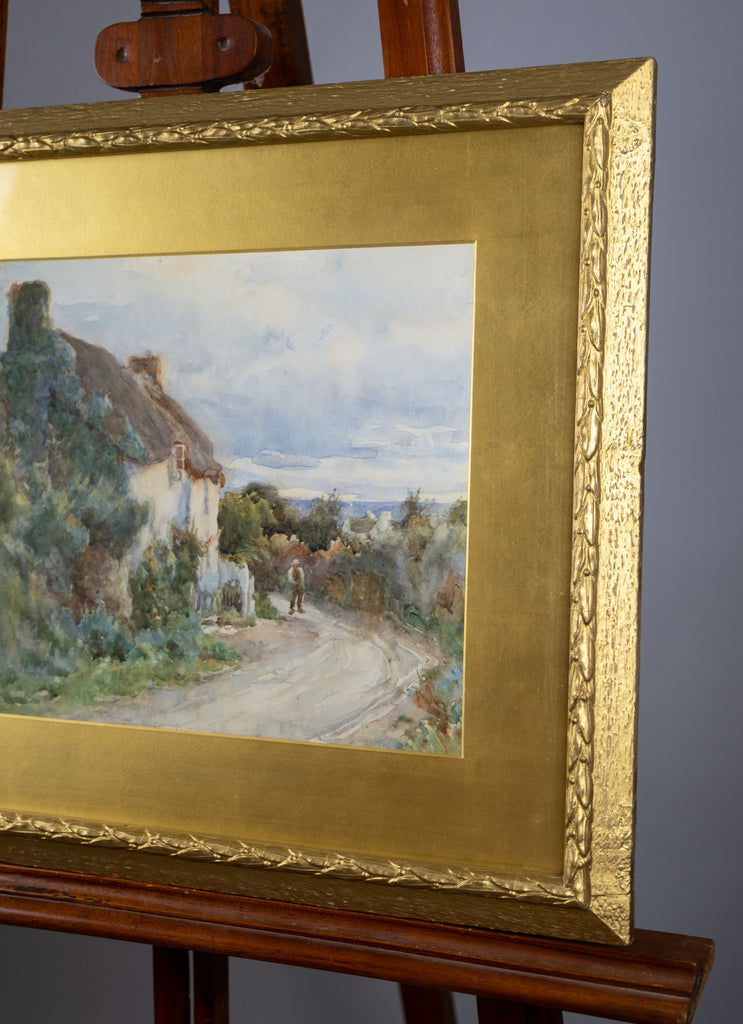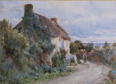 A fine watercolour depicting a figure on a country lane by Tom Clough (1867-1943).