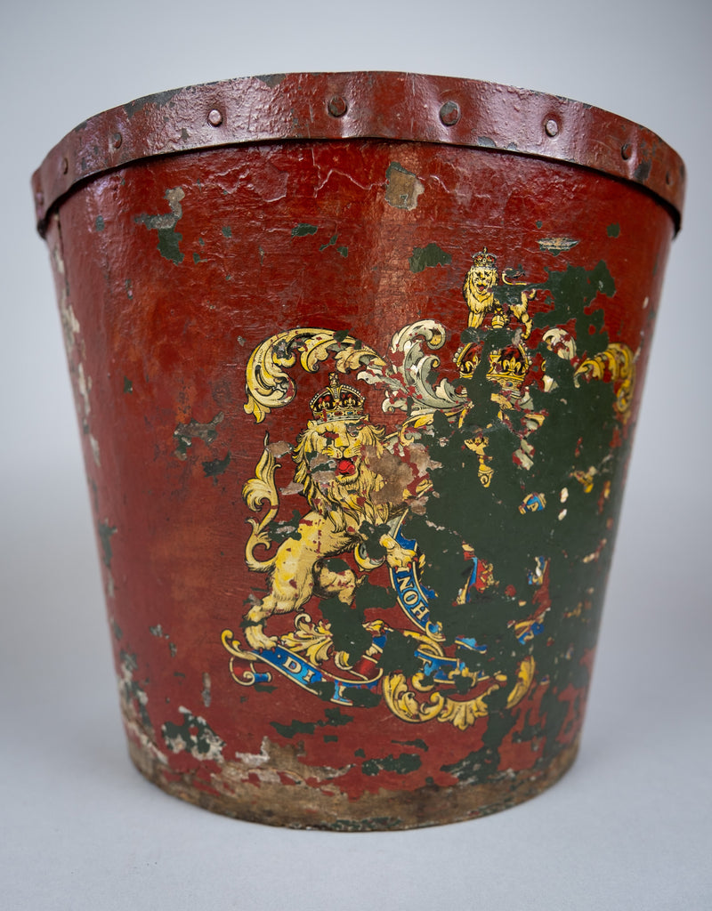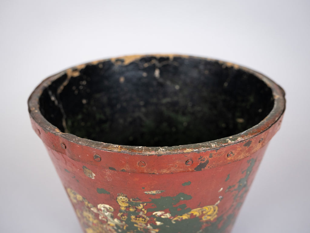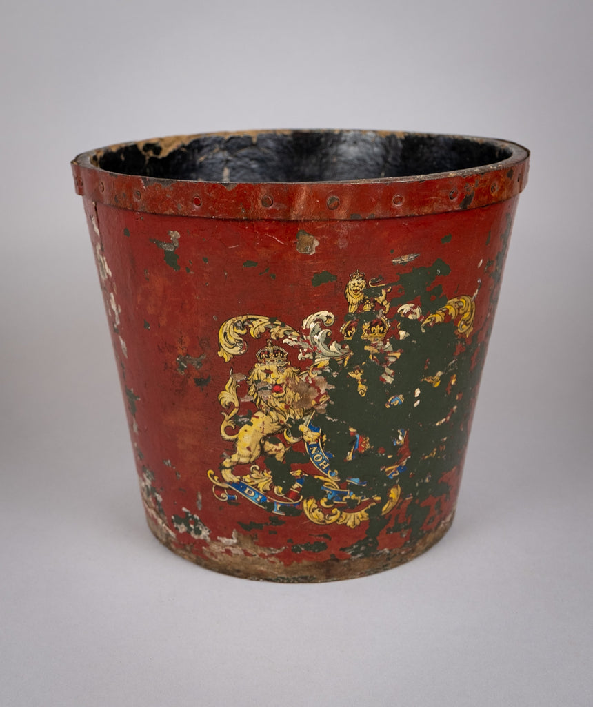Victorian Papier Mache Royal Arms Fire Bucket.