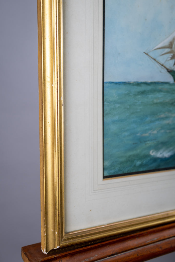 The mount shows some small age spots and there are nibbles to the gilt frame extremities (please see photographs). The work itself remains in an excellent condition throughout.